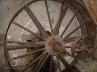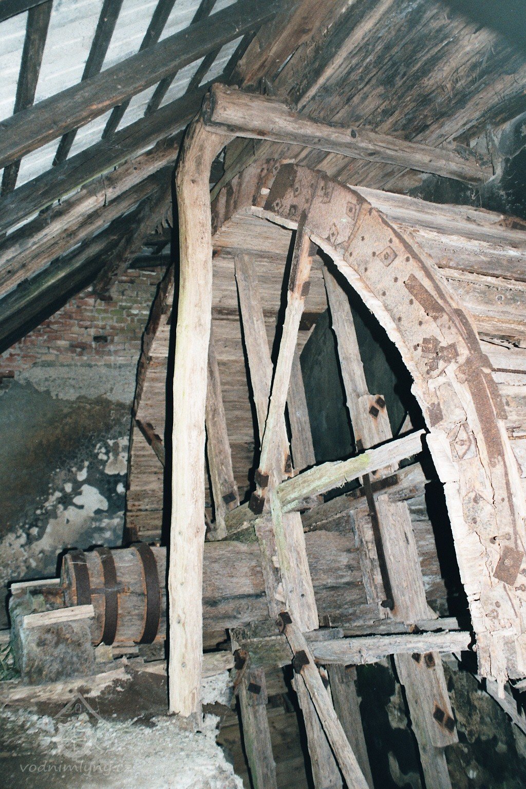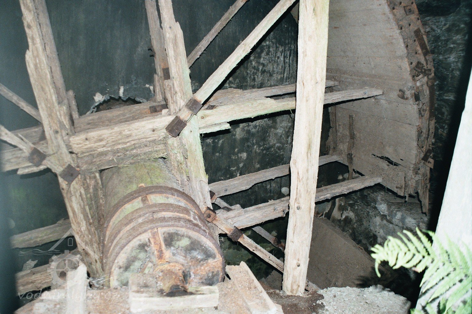 Popisdochováno celodřevěné vodní kolo o Ø 7, 5 metru.