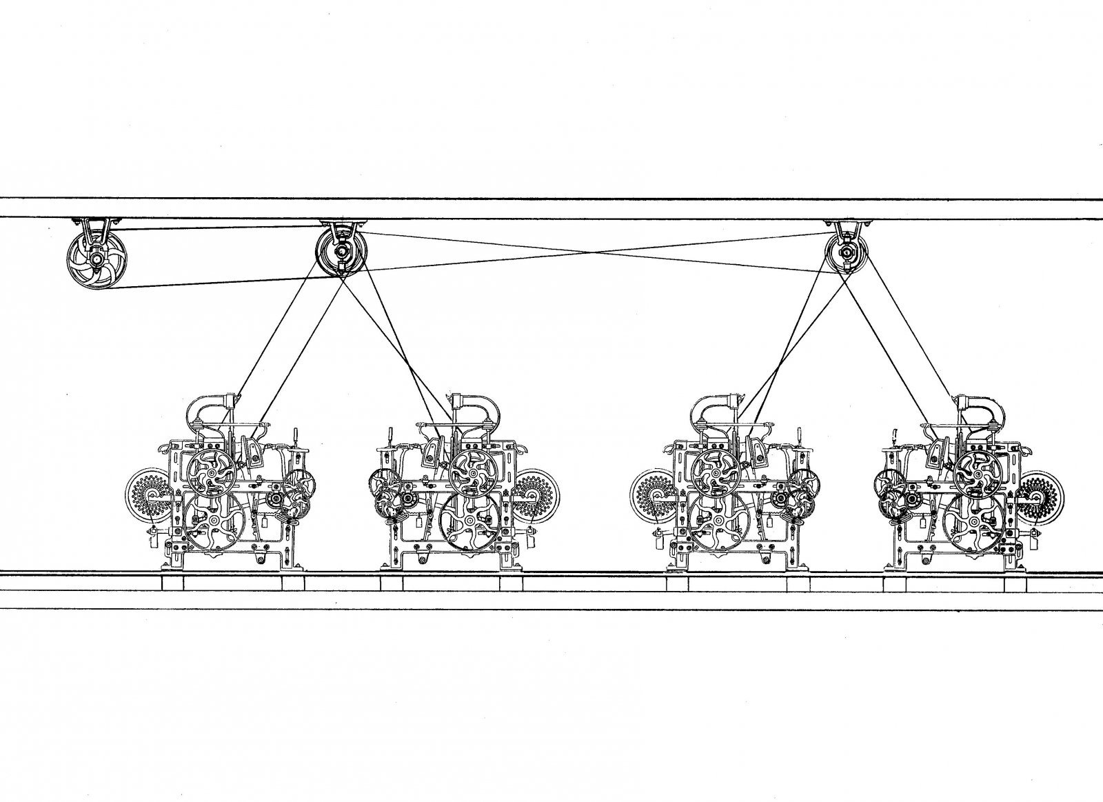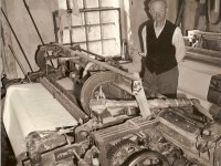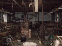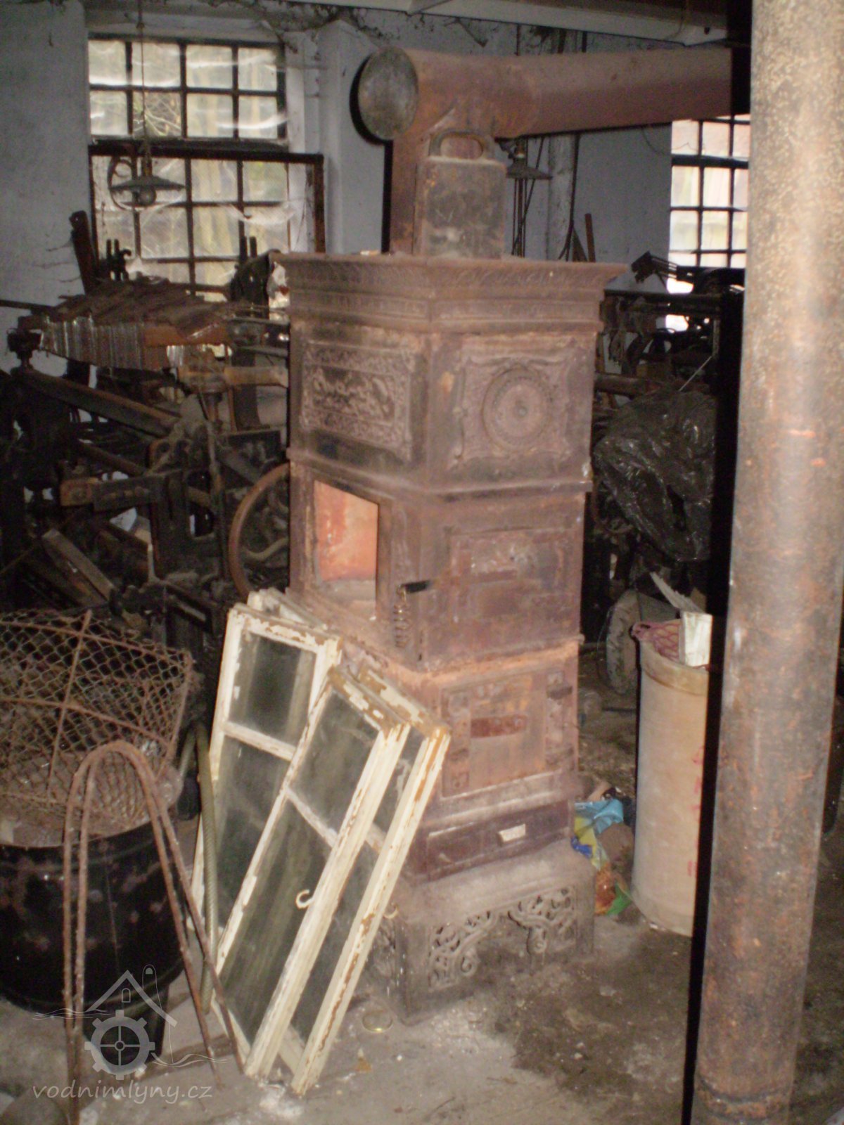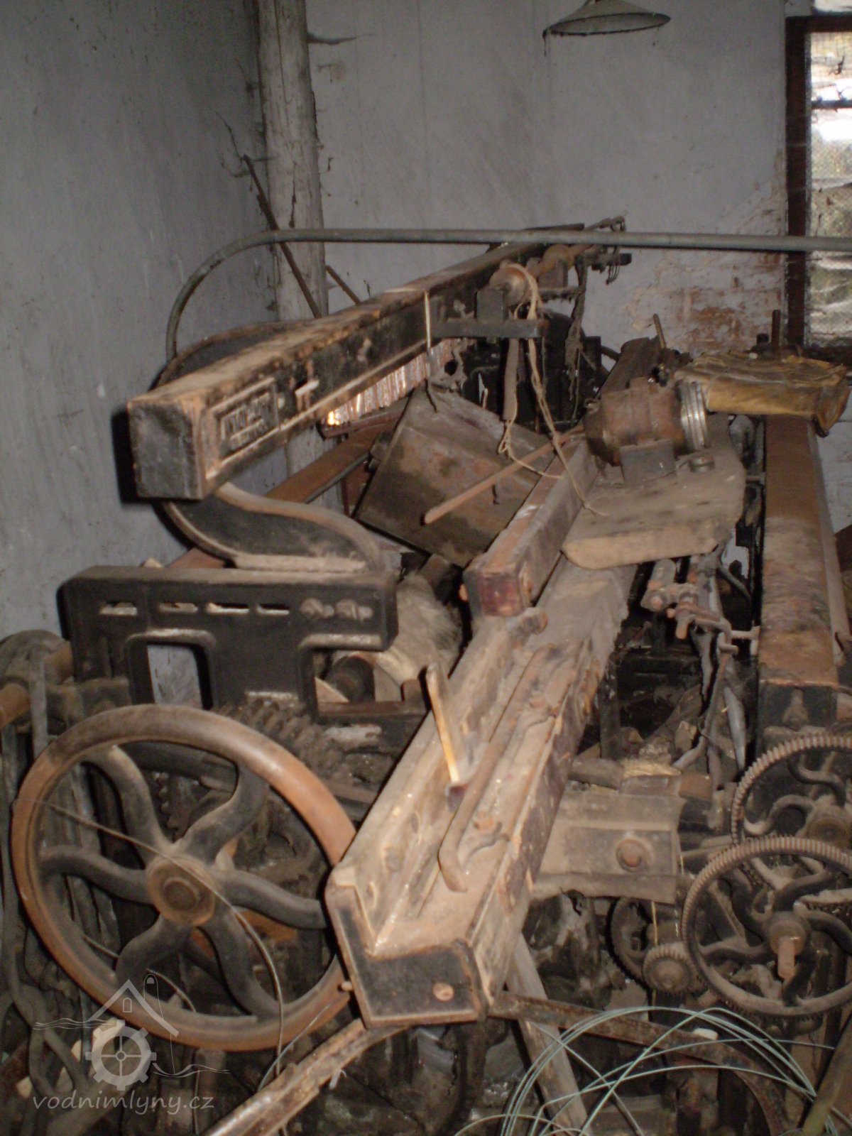 TKALCOVNA >> V tkalcovně bylo do r. 2007 14 mechanických stavů, z toho 11 hladkých, jeden revolverový a dvě listovky. Stroje byly v přízemí a byly poháněny původním dřevěným palečním kolem napojeného od hřídele vodního kola. Na palečním kole je napojen dřevěný cévník na kovové hřídeli a velká dřevěná a litinová řemenice. Dřevěná řemenice poháněla ještě přes předlohovou transmisi se setrvačníkem samostatně dynamo, litinová pak několik transmisí. Transmise poháněla v rozsáhlém prostoru přízemí tkalcovské stavy a v prvním patře soukačku, snovačku a převíječku. Dále transmise poháněla mlýnské stroje v přístavku, kovoobráběcí soustruh a frézku. Byl zde i pomocný stabilní motor a diesel-generátor. Regulaci konstantních otáček zajištoval mechanicky Wattův kulový regulátor napojený na třecí brzdu, který v případě nárůstu otáček transmisi brzdil.