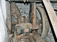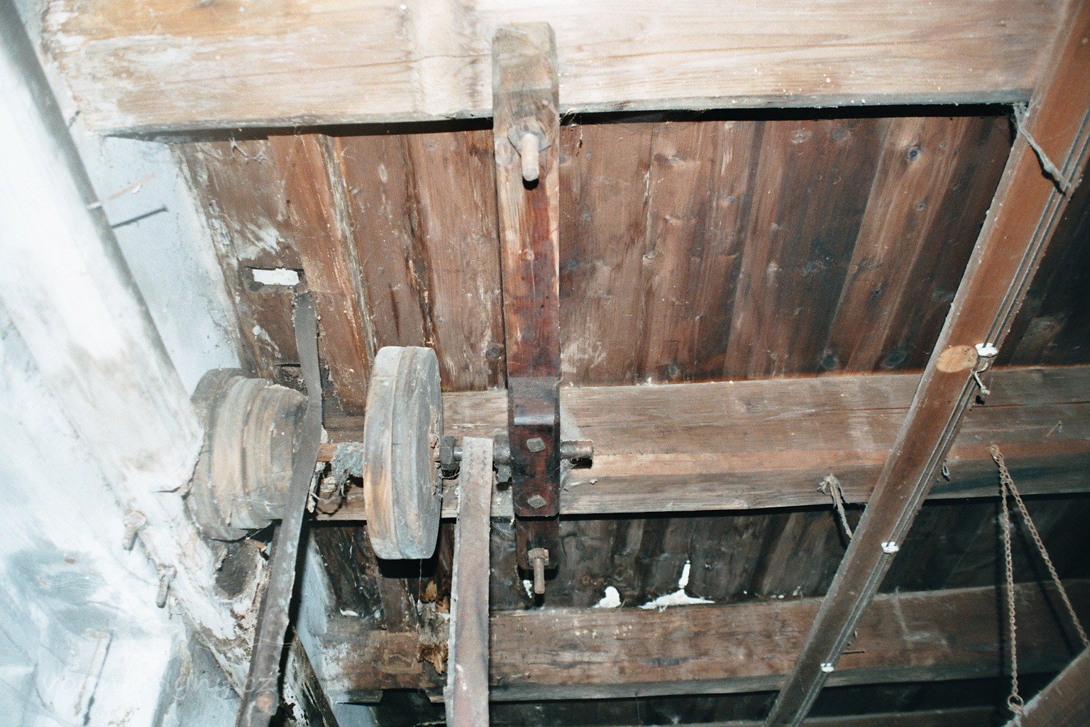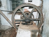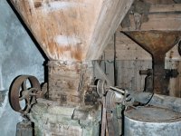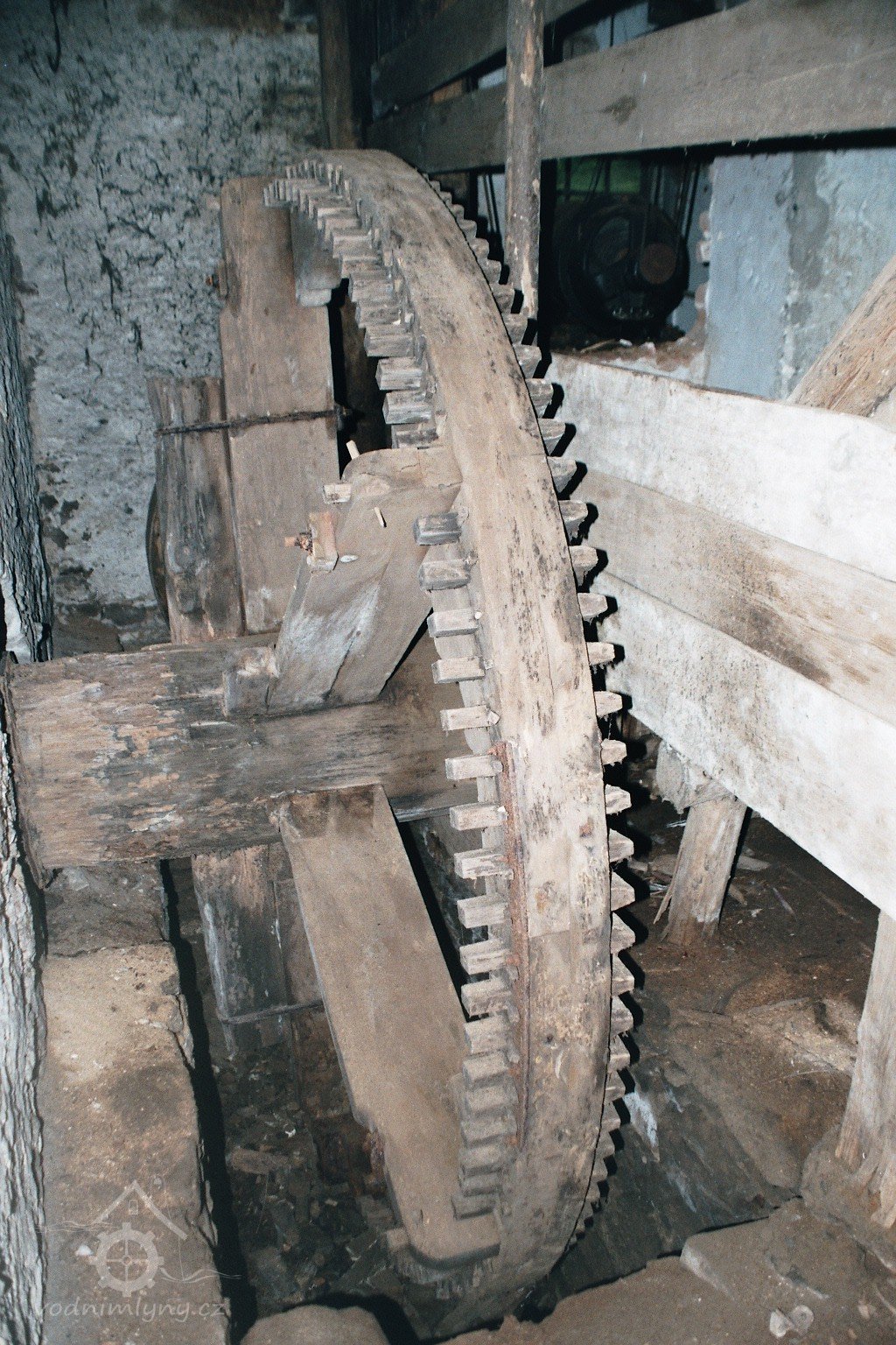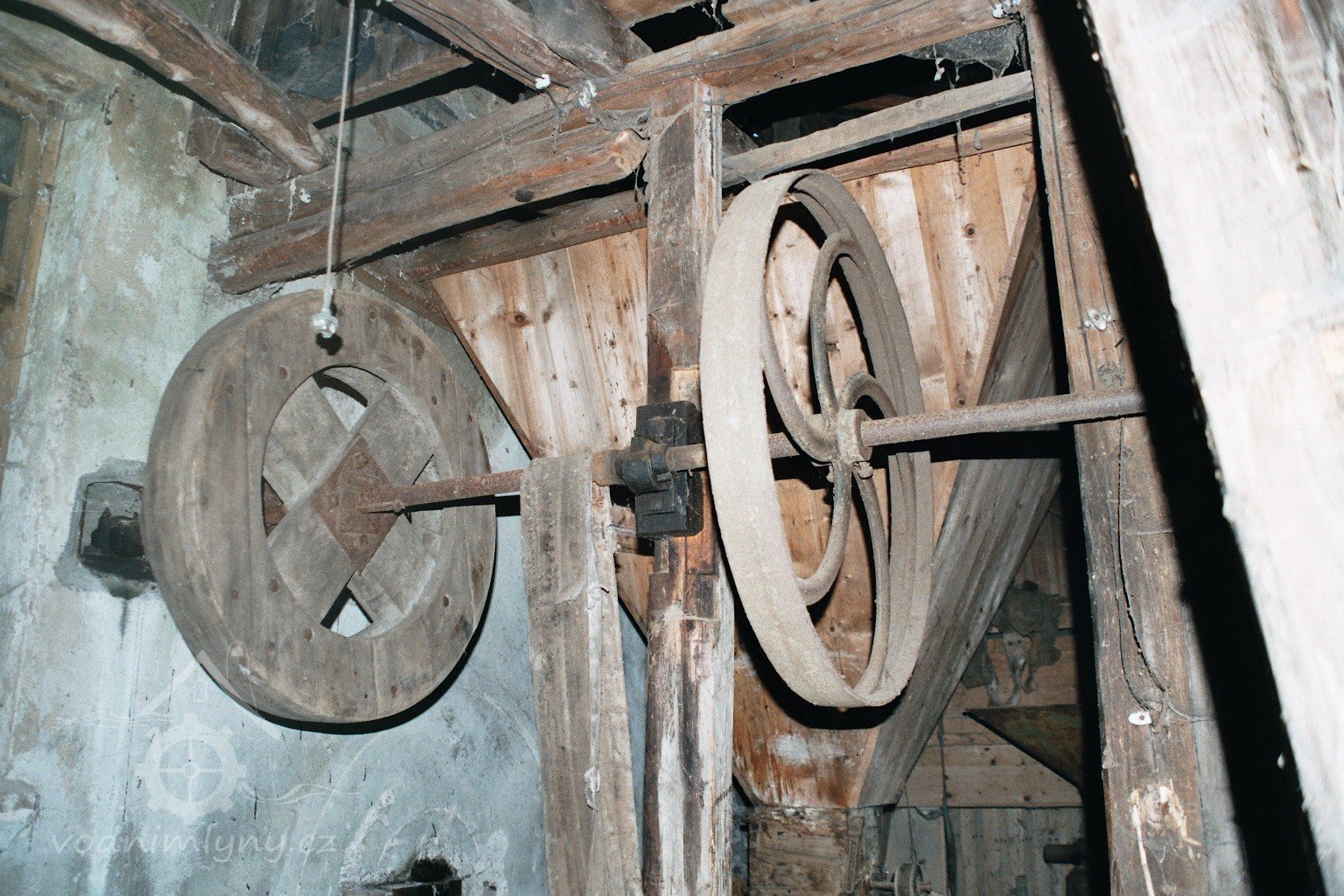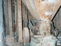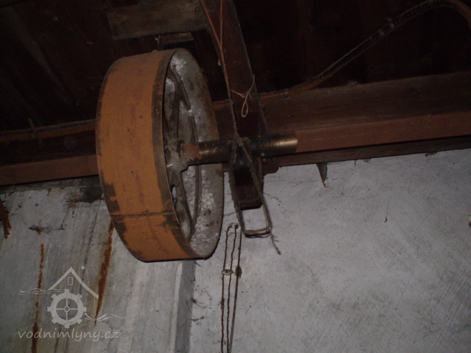 MLÝN >> Mlelo se na jednoduché mlecí stolici domácí výroby. Pod stolicí je excentrické žejbro, dále jsou zde 2 jednoduché kapsové dopravníky, malý moučný hranolový vysévač, novější šrotovník a násypný koš. Stroje byly poháněny jednou menší transmisí.