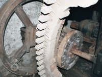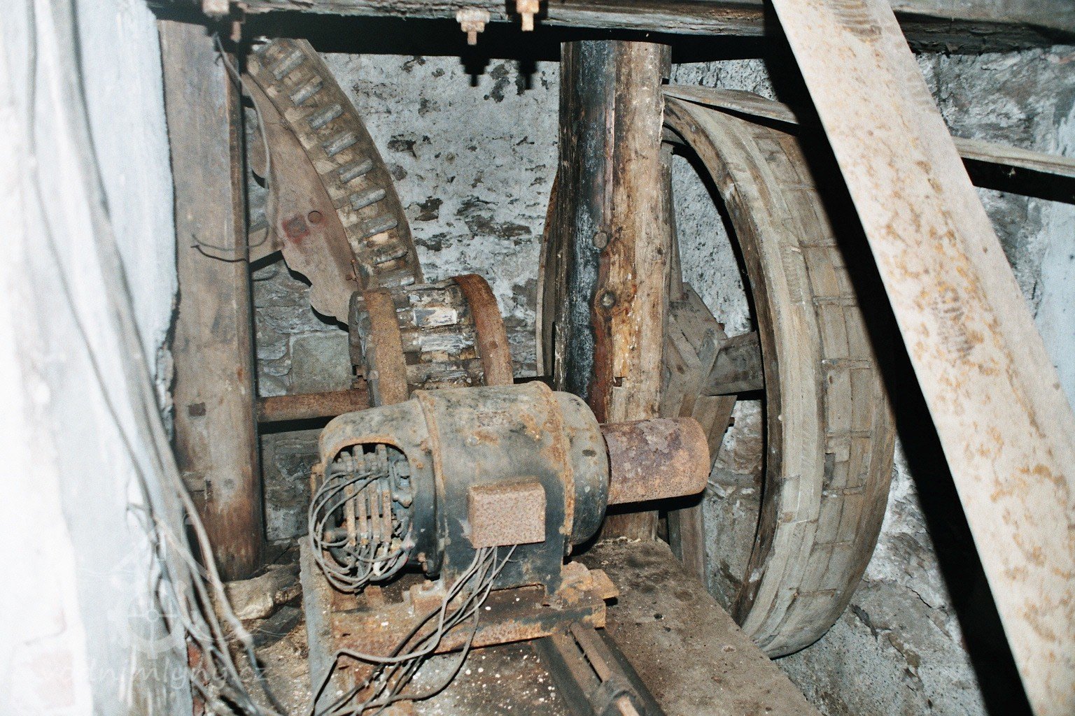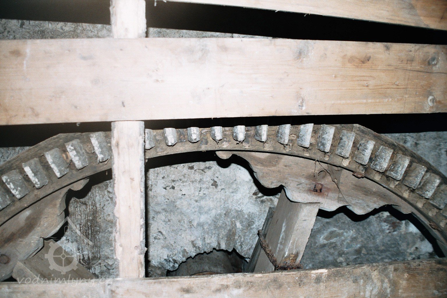 Na místě zůstaly dochovány vodní kolo, paleční převody a velké transmise.