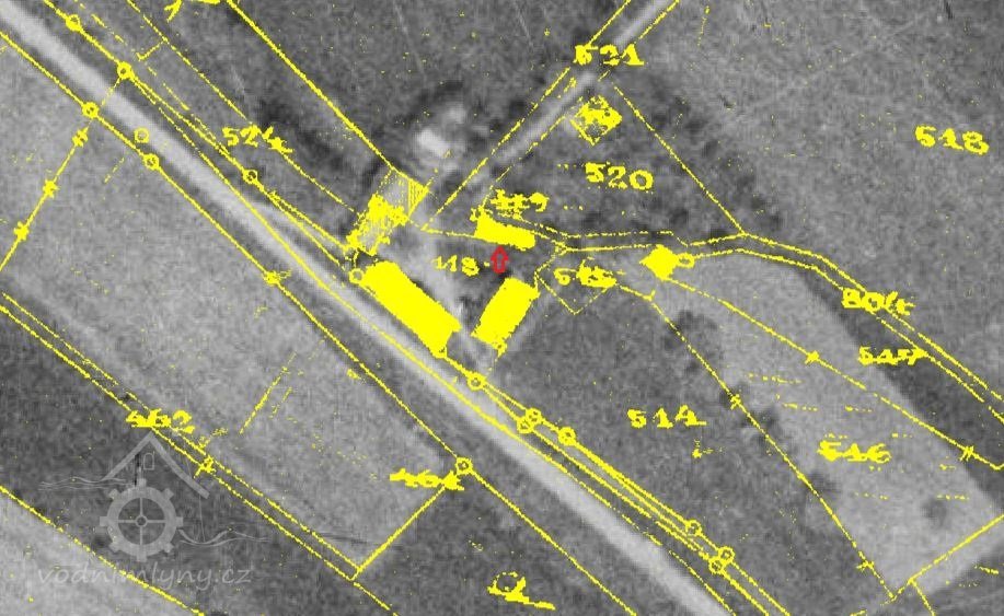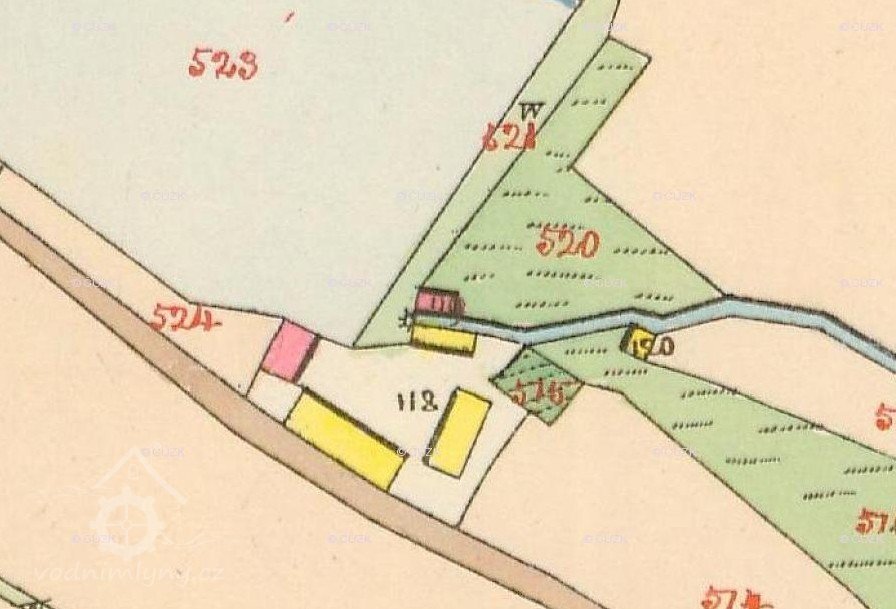 Mlýn existoval již v 2. polovině 18. st., je vyobrazen na I. vojenském mapování z let 1764-1768. (MH)