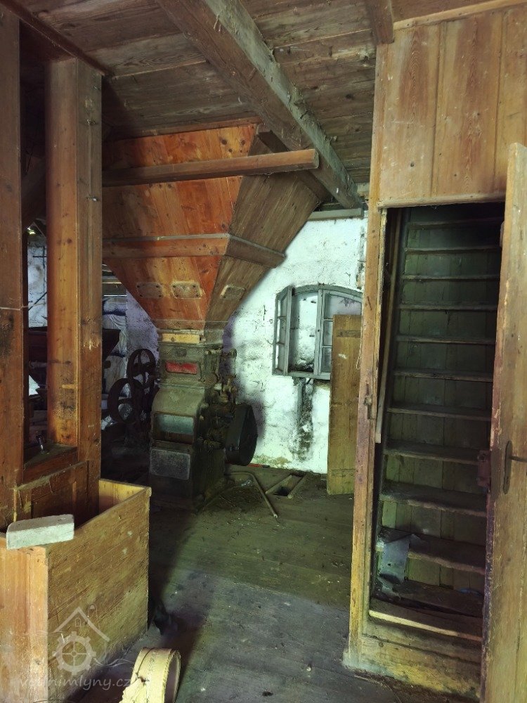 Ve mlýně 2 loupačky, jedna značky Leopold Kašpar Velká Senice u Olomouce