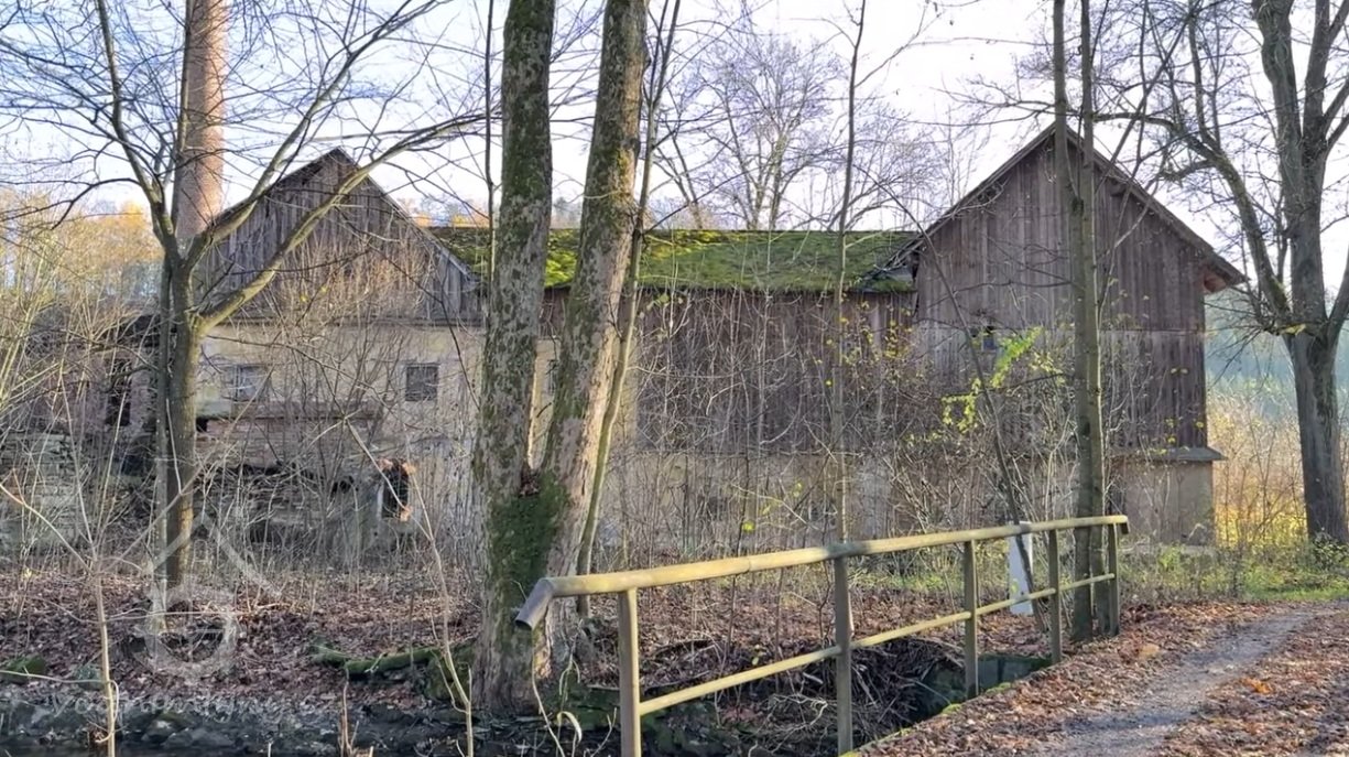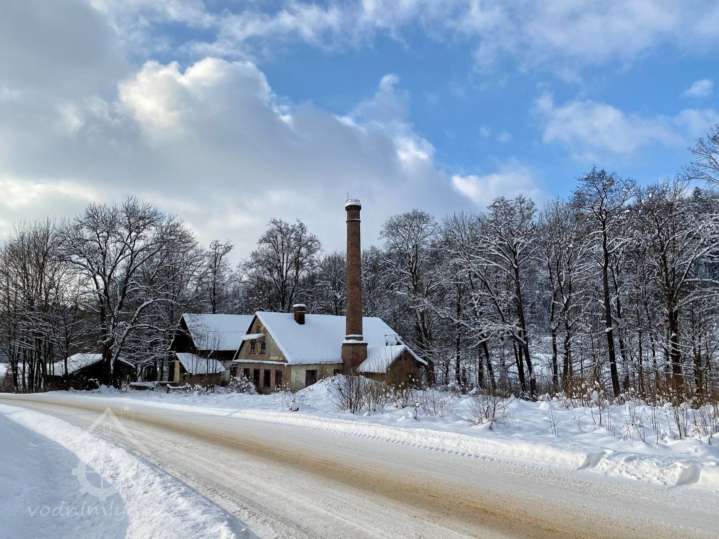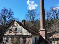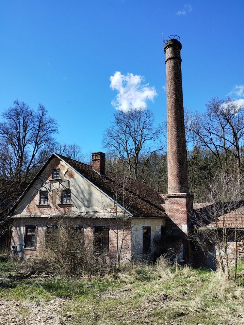 Areál mlýna, pilnice, strojovny, kotelny a komína.