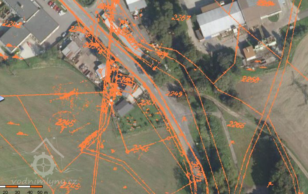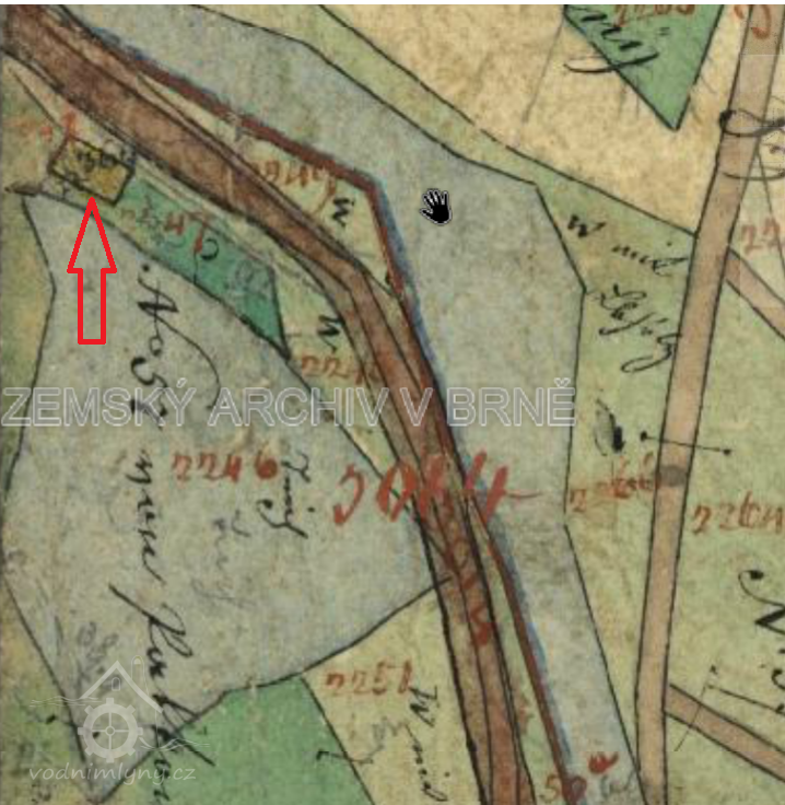 Malý mlýnek pod hrází rybníka pč. 2246 na levém břehu říčky Olešné nad jejím soutokem