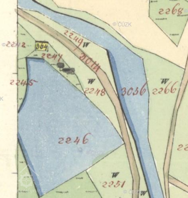 s potokem Pstružím. Dnes již ani mlýn, ani rybník neexistují. Místu se říká doposud Bažiny.