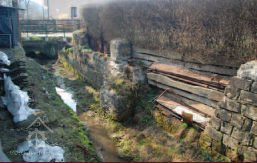 Současný dochovaný náhon čerpá vodu ze vzdálenějšího Byrtusovského potoka a odtok ústí do blízkého Viatrovického potoka. Původní starý mlýn měl ale náhon z řeky Olše a začínal nad starým splavem, který se nedochoval. Stopa po tomto náhonu je v terénu doposud znatelná.