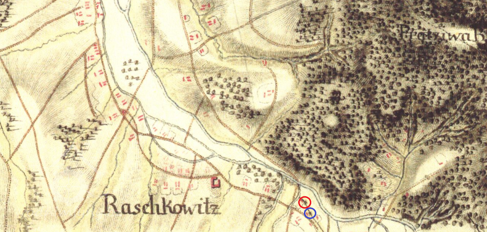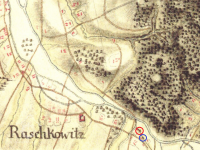 350 m jv jv od kaple sv. Barbory v Raškovicích