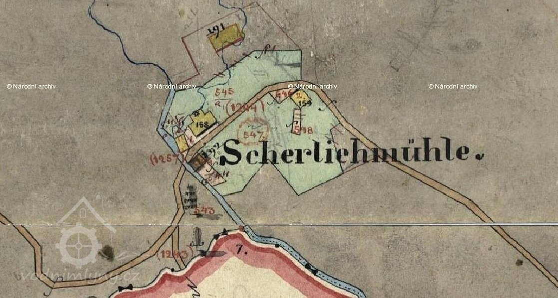 Mlýn na císařském otisku, 1840, © http://archivnimapy.cuzk.cz