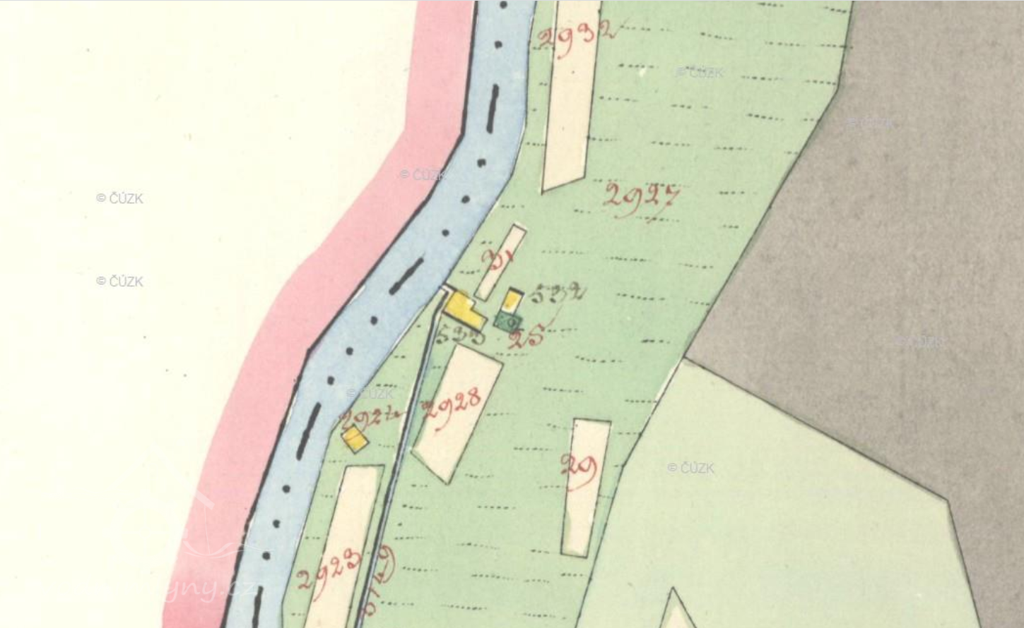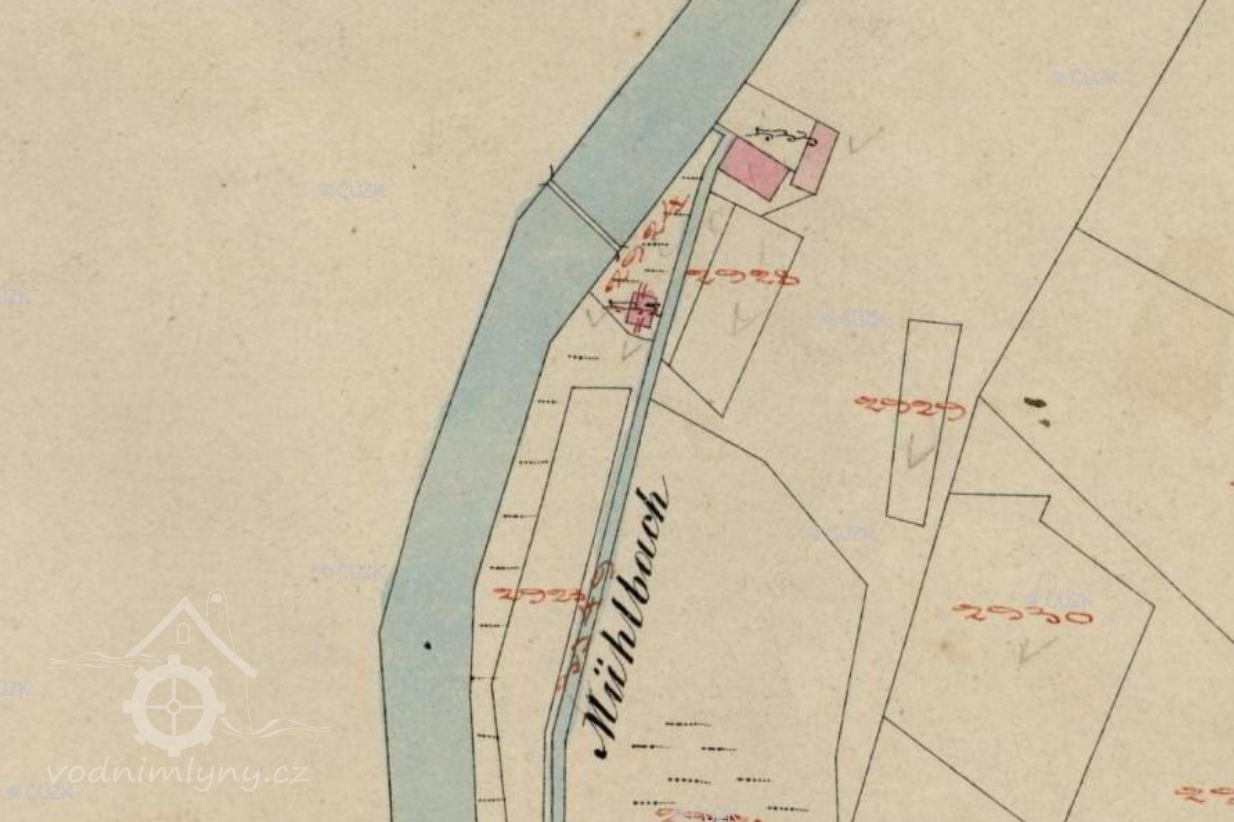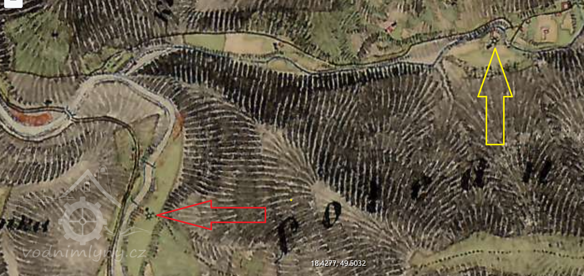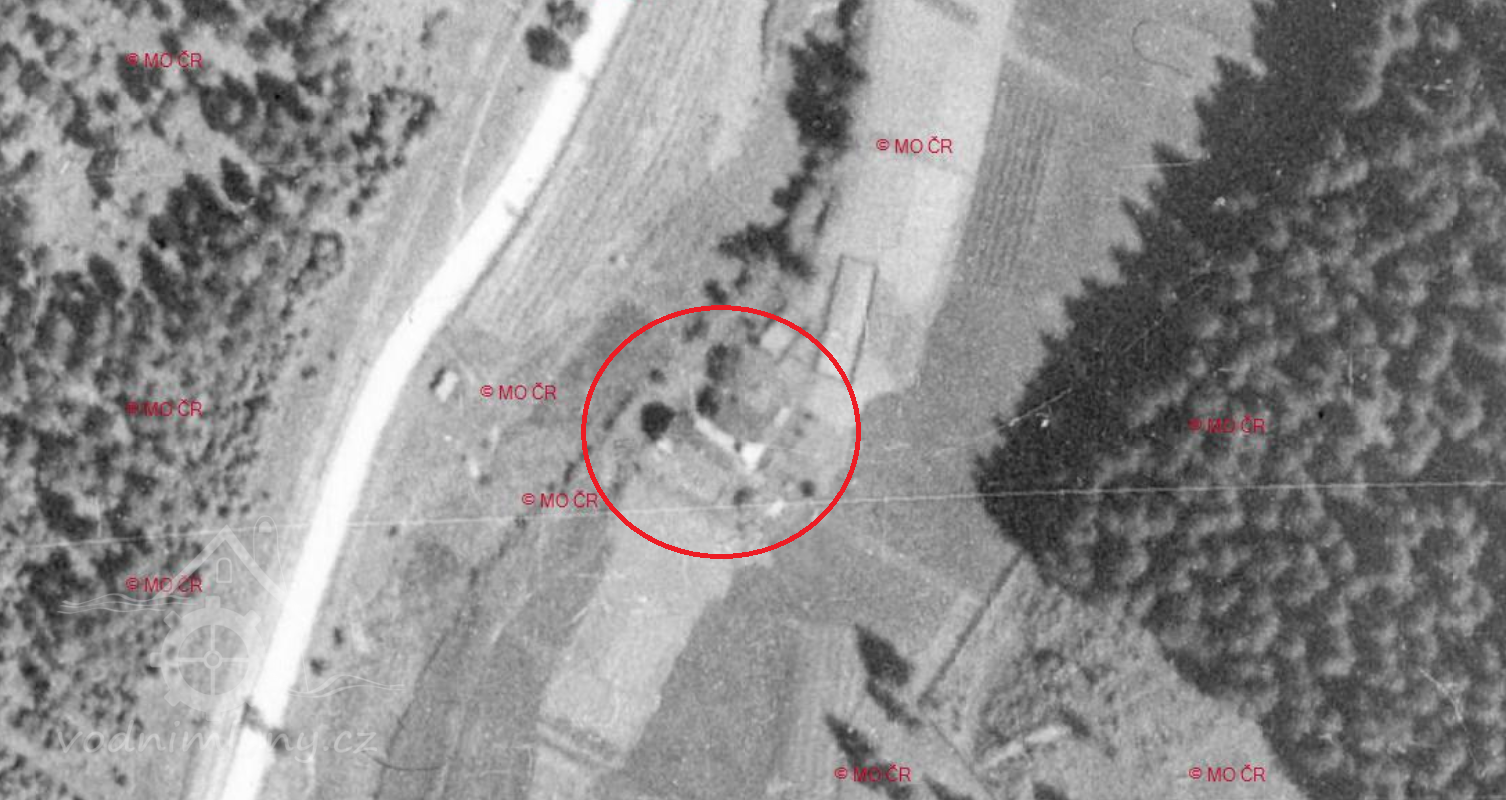 Zaniklý mlýn s pilou, mlýniště zatopeno přehradou Šance.