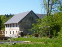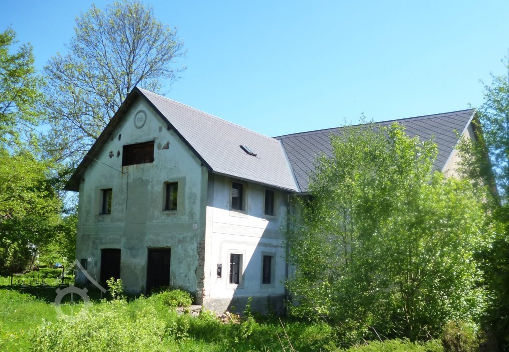 Obytná budova mlýna s mlýnicí jsou postaveny do tvaru písmene L.
