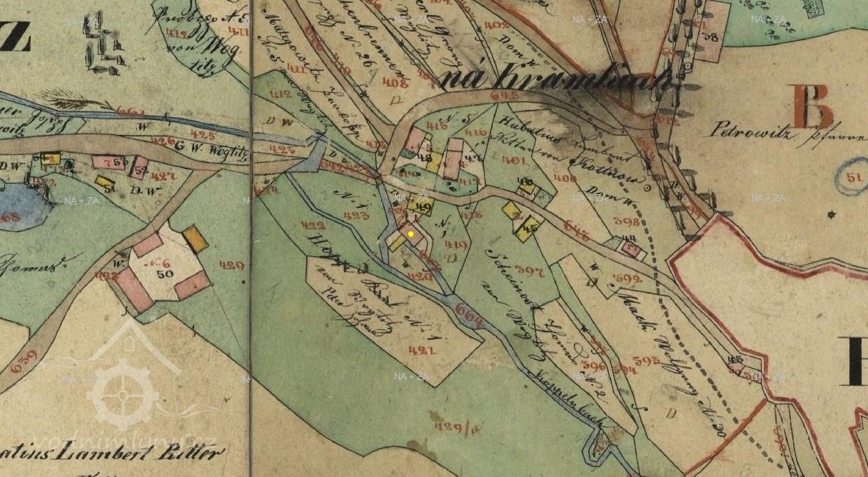 Mlýn je zakreslen na indikační skice z roku 1837, majitel Jan Peter.