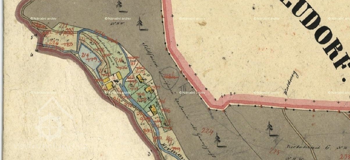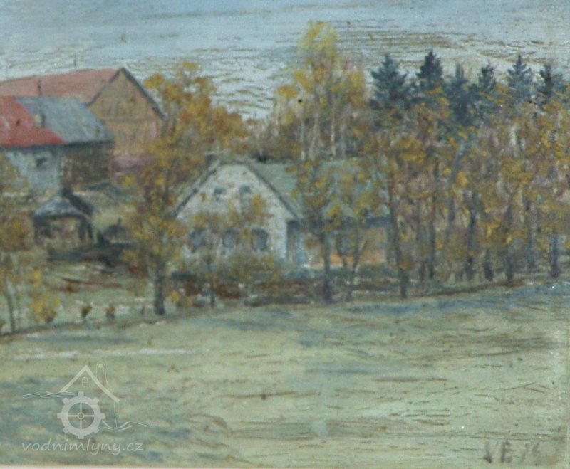 Mlýn s tkalcovnou, nad mlýnem obnovený rybník.