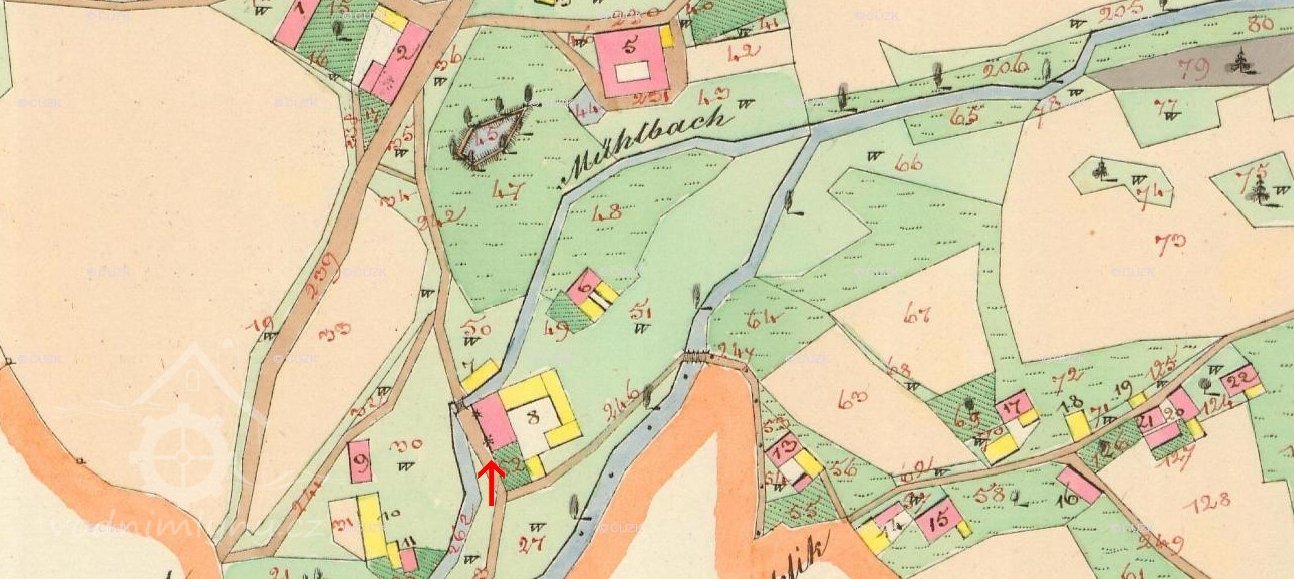 V roce 1930 poháněla mlýn a pilu dvě kola na svrchní vodu, první s průtokem 0.197 m3/s a spádem 4.5 m a druhé s průtokem 0.113 m3/s a spádem 4.48 m o výkonu 12.1 k.