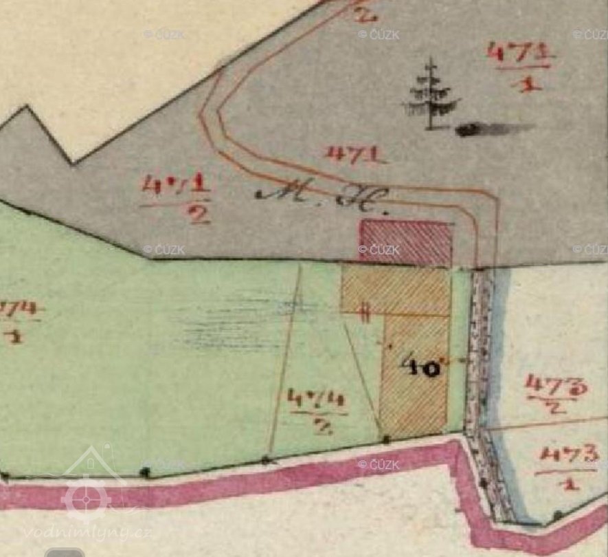 Mlýn vznikl až po roce 1829, na Indikační skice je načrtnut, na Císařském otisku chybí (RŠ)