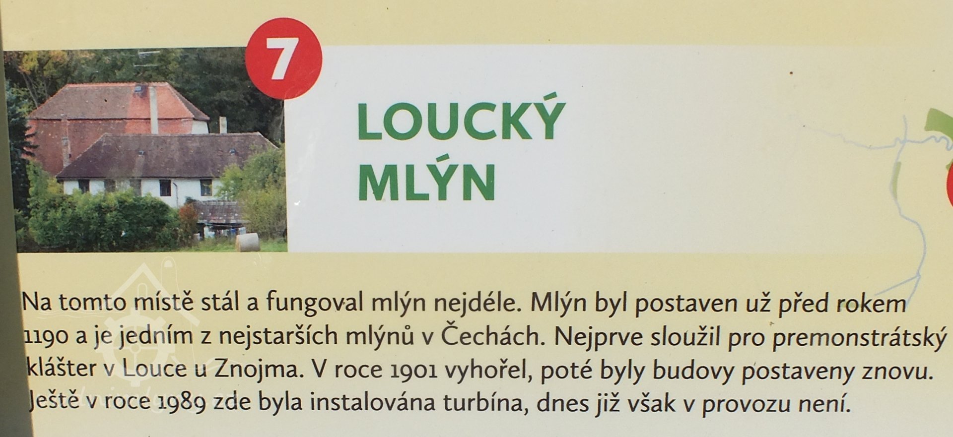 Loucký mlýn - nejstarší mlýn na Moravě. Písemná zpráva o něm již v listině z 25. října 1190, uložené v Moravském zemském archivu, kterou jej věnoval  vévoda Otto Český spolu s kaplí sv. Ondřeje a celou vsí s hospodou premonstrátskému klášteru Louka u Znojma. /PK via no.666/