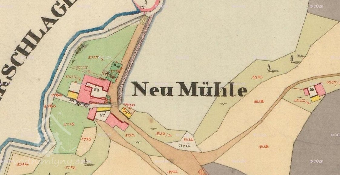 Mlýn uveden v Seznamu vodních děl republiky Československé z r.1930, majitel Jan Schüller, v sousedství pila čp. 52 stejného majitele