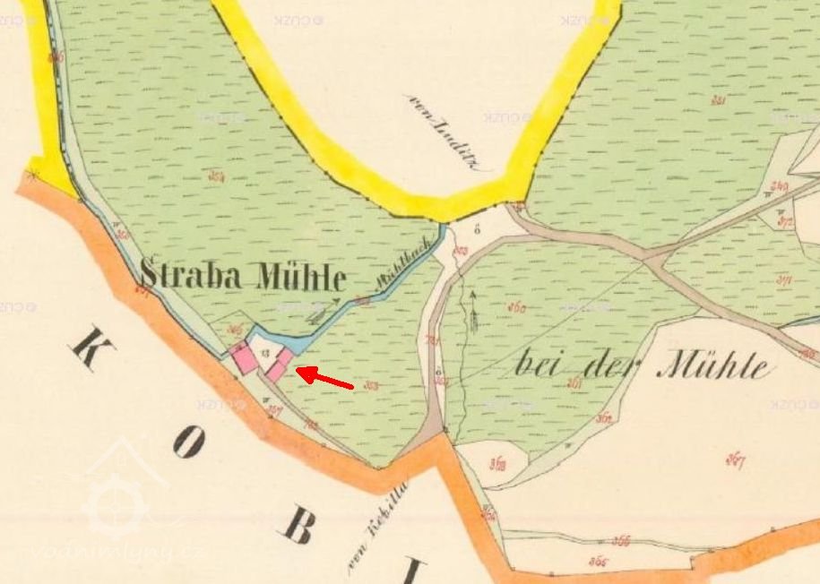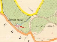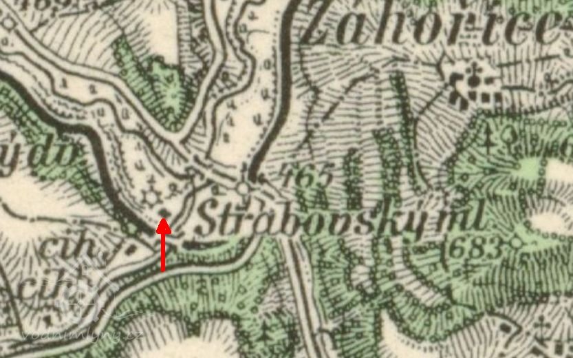 Na historických mapách je uváděn jak Straba, Strabovský ml.