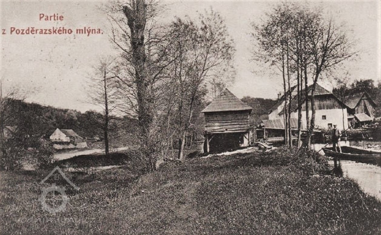 "Mlýn byl údajně založen roku 1389, ale doložené pisemné zmínky jsou datovány do 16. stoleti, kdy býval panským dvorem přislušejícim k panstvi Dívči Kámen. Poté v 16. století se stal majetkem Petra Voka. Dne 30. ledna 1601 jej Petr Vok dáva darem svému komorníkovi Janu Hagenovi ze Schwarzbachu. Ten část dvora přestavuje na mlýn a pivovar. Od něj 5. května 1628 kupuje celý statek Pozděraz (dvůr, pivovar i mlýn) Jan Oldřich Eggenberg a to za 7000 kop grošů mišeňských. Mlýn prošel rukama mnohých knížat, hrabat i obyčejných lidí a existoval do roku 1952. Poté byl konfiskován a jeho činnost byla ukončena. Pak chátral a lidé z něj brali suroviny na postavení vlastních chatiček. Dnes na míste zbyla 5metrová kamenná zeď a část klenutých sklepů."