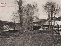 Původně rožmberský mlýn Jana Kyzbise z Pozděrazi na Vltavě byl mlýn o dvou českých složeních poháněn spodní vodou dřevěnými koly (zmíněn poprvé 1389 - udává Kovář, i 1628). Přestal mlít r. 1915. Pak začal chátrat. U mlýna byla v samostatné dřevěné budově pila na jeden řez. Pracovat přestal po r. 1945 a v 80. letech zbořen. Dnes zachovány zbytky náhonu a fragmenty jezu. Na místě budovy stojí rekreační chata.
