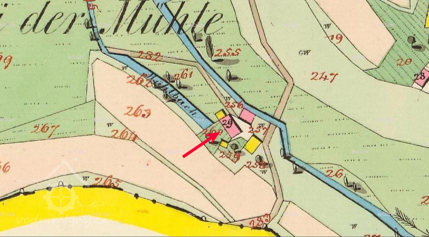 Popis1930: 1 kolo na svrchní vodu, hltnost 0,091 m3/s, spád 4 m, výkon 3,15 HP