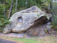 Nedaleko Mohelky je ve skále svatý obrázek. V dávných dobách tu stál mlýn. U mlýna v Mohelce žil vodník, který přes den hospodařil a večer chodil k mlynářovi do světnice, kde si opékal pstruhy. Mlynář sice neměl podivného mužíka rád, ale protože mu chutnaly ryby, dovolil mu mlýn navštěvovat. Jednou v noci se ve mlýně zastavil medvědář s velkým hnědým medvědem. Čeleď se s hostem seznámila, jelikož medvědář prošel velký kus světa, tak vyprávěl, jak se tam žije. Medvědář s medvědem si ustlali na podlaze a usnuli. Mlynář si sedl k oknu, zapálil si fajfku a pozoroval řeku. Najednou se otevřely dveře a do vytopené místnosti vešel vodník. Rozložil si své pstruhy na kamna a nasával jejich vůni. Když byly ryby upečené, sedl si vodník ke stolu a začal jíst. Nádherná vůně vzbudila vyhladovělého medvěda. Zvíře se vrhlo ke stolu. Vodník nechápavě zíral a ptal se mlynáře: „Hospodáři, co to tu máš za podivnou kočku, nenechá mě najíst, sápe se po mých rybách, ihned ji zažeň.“ Majitel mlýna dělal, že spí, a tak si huňáč pochutnal na smažených pstruzích, neboť vodník vyběhl z domu. Když ráno přišel mlynář ke stavidlům, aby vypustil více vody pro mlýnské kolo, vylezl z vrbiček ještě vyděšený vodník a zeptal se: „ Máš ještě mlynáři v domě tu příšernou kočku? „ Hospodář se podivil: „Ano, kočku mám mourovatou, leží na peci s pěti narozenými koťaty.“ Vodník mlynářova slova nepochopil a zmizel v rákosí se slovy: „Už mám dost té tvé obrovské kočky!“ Od té doby se ve mlýně nikdy neukázal. Medvědář odkráčel se svým huňáčem k severu a mlynář jim slíbil za to, že zbavili jeho mlýn zelené příšery, že se u něj mohou ubytovat i na zpáteční cestě. Po několika měsících se oba podivní poutníci ve mlýně skutečně ukázali. I tentokrát se jejich přítomnost v domě mlynáři vyplatila. Uprostřed noci přepadli mlýn lupiči, vylomili vrata a s příšerným řevem požadovali po vystrašeném mlynáři peníze. Hluk však probudil i medvěda. Ten se několikrát ohnal a loupežníky rozsápal svými obrovitými tlapami. Mlynář si myslel, že mu medvědáře a jeho zvíře poslalo na ochranu samo nebe, a proto nechal umístit na blízkou skálu svatý obrázek.