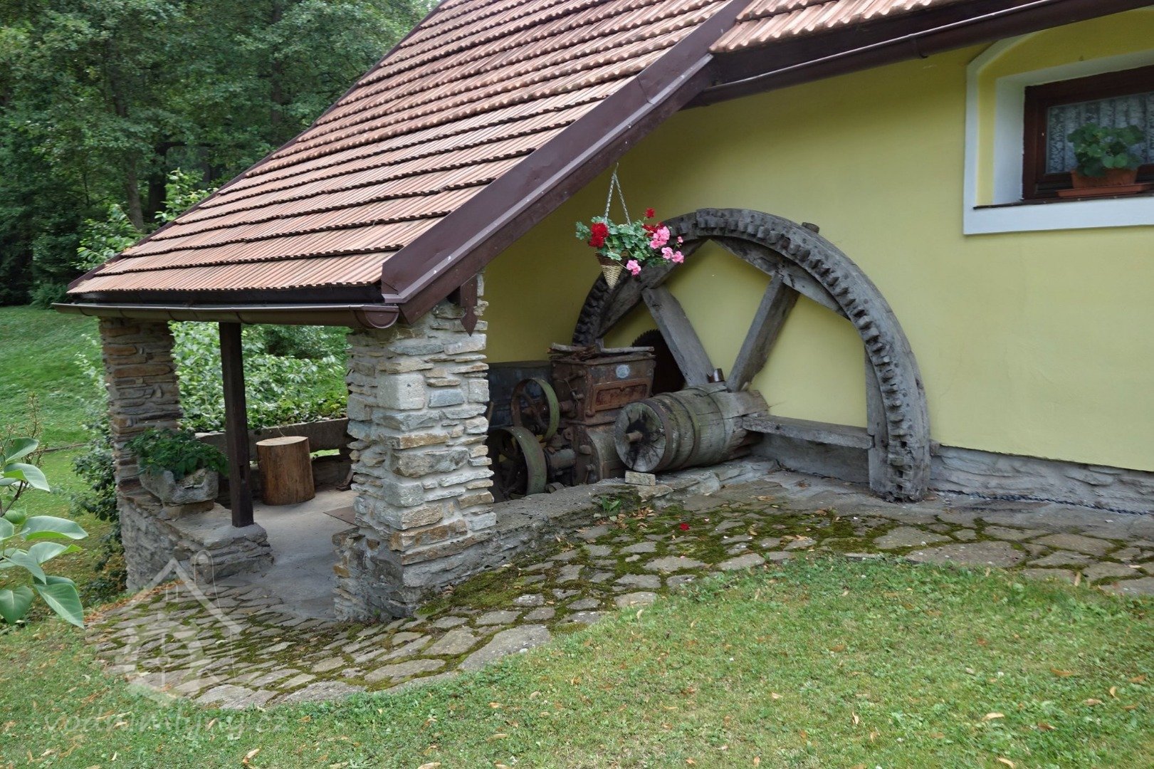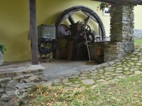 U stěny mlýna jsou zbytky pravděpodobně poslední technologie - palečný kolo, válcová stolice. V lednici je maketa mlýnského kola.