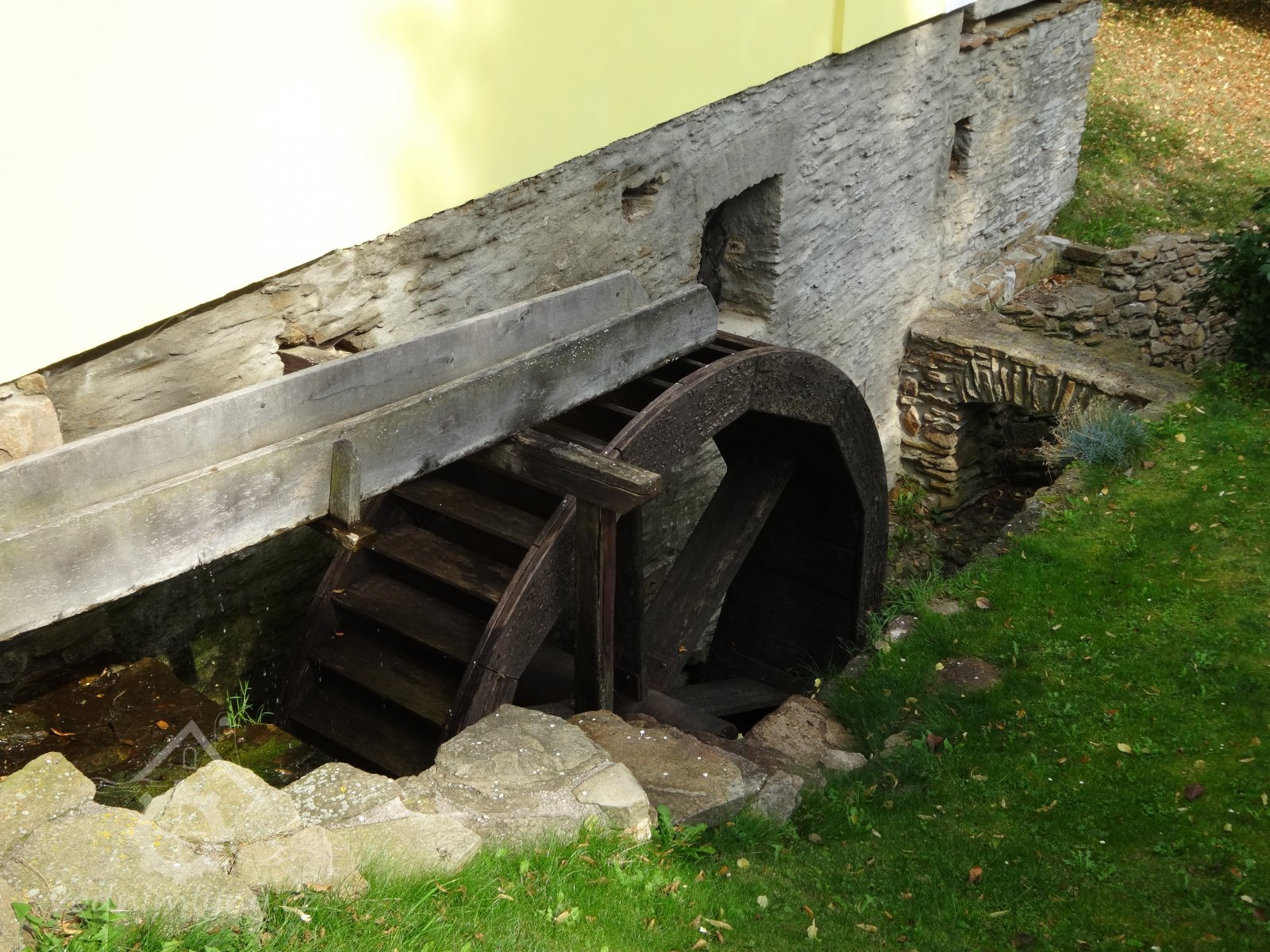 Při pohledu na stávající tok vody na maketu mlýnského kola vidíme, jak šla voda i v dobách, kdy mlýn mlel. Voda se nadržovala v nádržce(rybníčku) nad mlýnem. Stavidlem byla vpouštěna do otevřené roury a pak do žlabu. Využitá voda odcházela zpět do potoka.