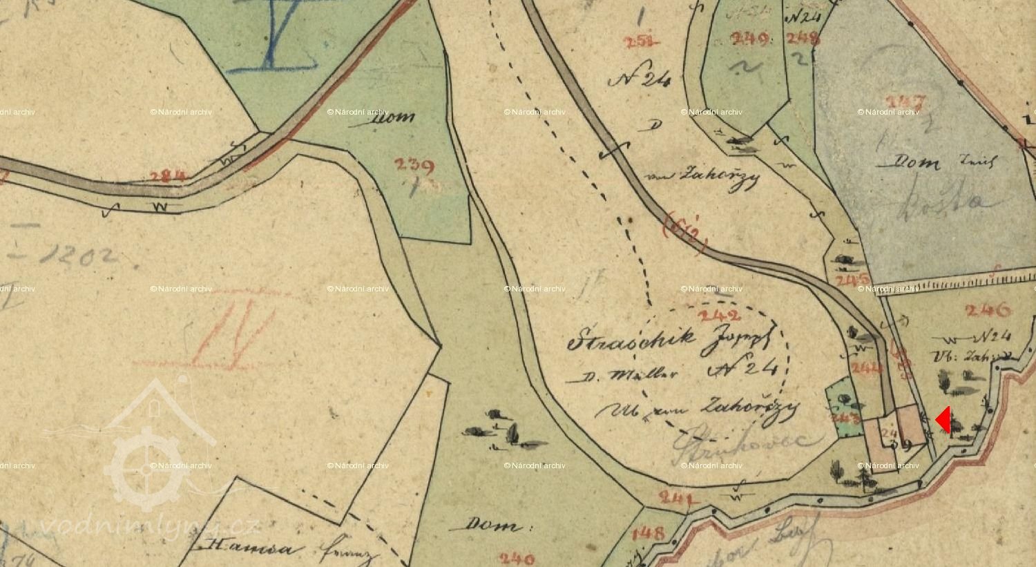 Josef Strašík mlynář – uveden na Identifikační skice z r.1838 (Záhoří č.24)