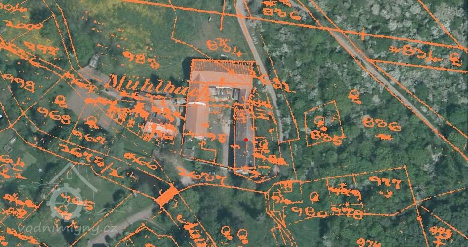 Velký mlýn na půdorysu U, v roce 2017 silně poškozený požárem, nicméně stále obývaný.