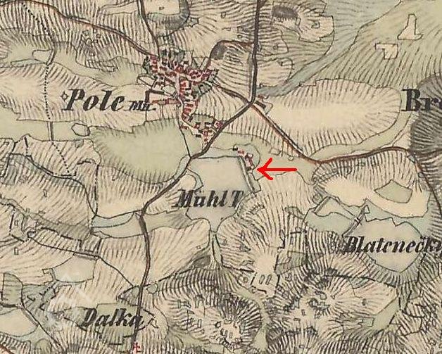 O mlýně v Poli se dovídáme, že roku 1659 byl o jednom složení a mlynářem na něm byl Jan Mašek. Ten tu byl až do roku 1677.