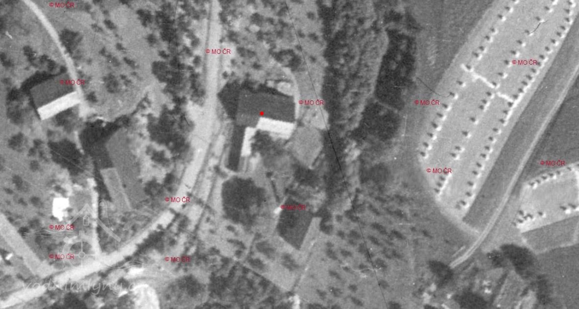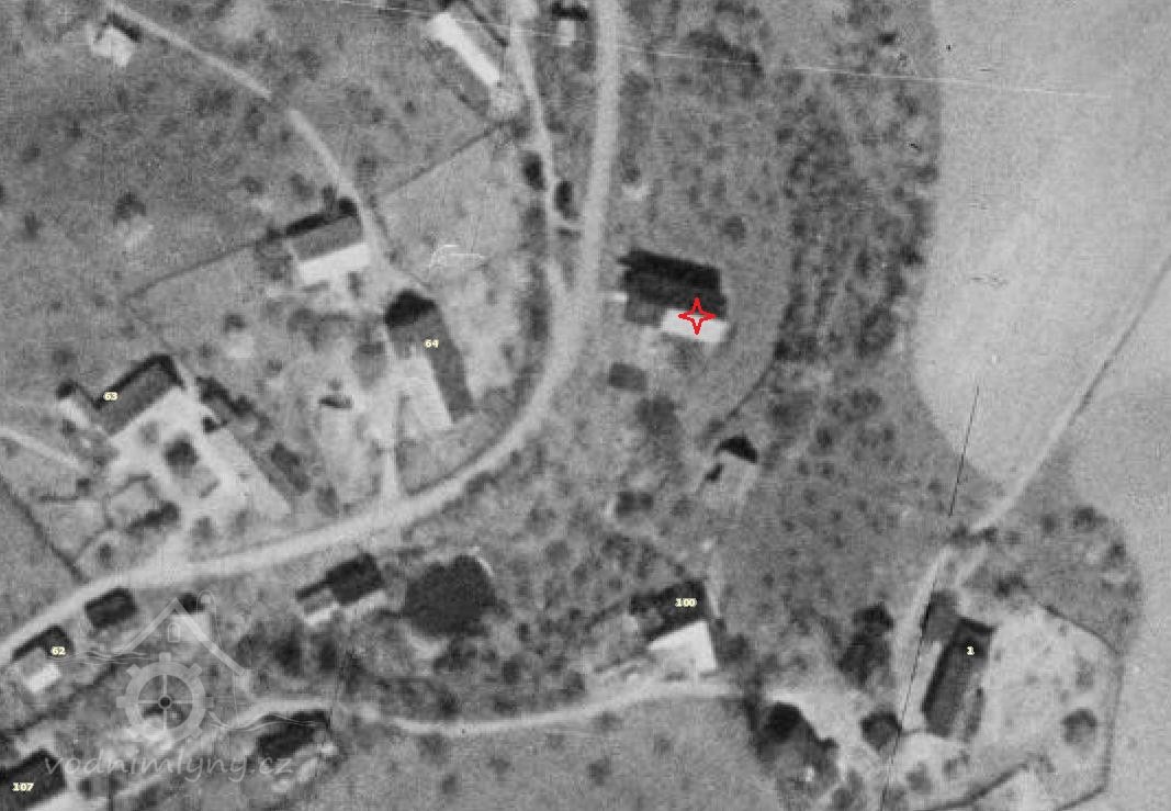 Na leteckém snímku z roku 1954 stojí pouze novější zděná budova, dřevěná část mlýna byla zbourána.