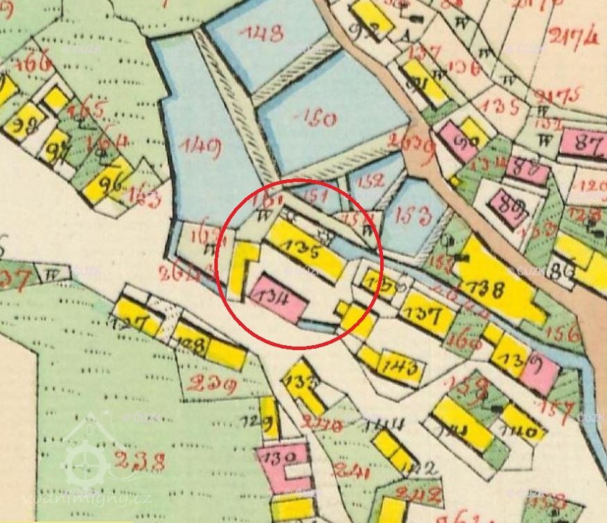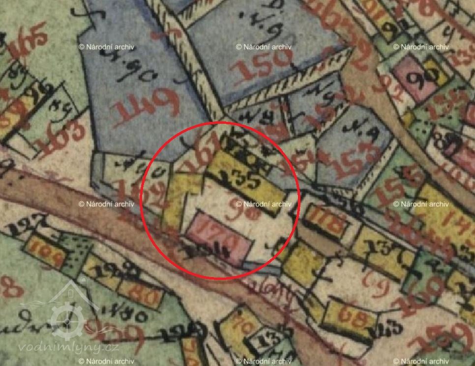 Mlýn stál uprostřed obce. Vodu dostával ze čtyř rybníků. Mlýn byl spojený s pekárnou. 1945 mlýn zanikl.
