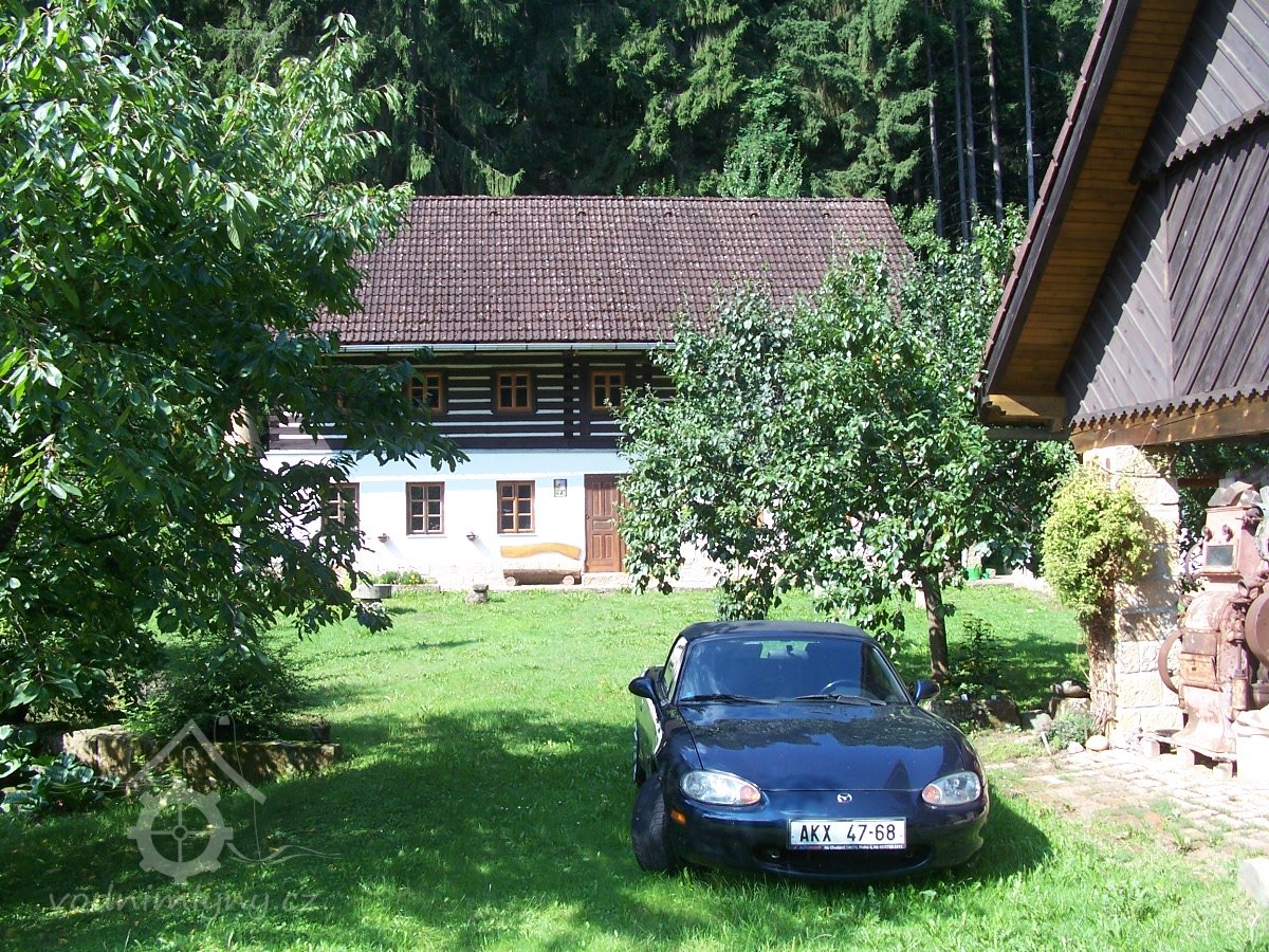 Pohled do míst, kde mlýn stával, stromy vpravo kryjí řeku Blanici, mlýnský náhon šel zprava po louce, 19.6.2019, © pepino