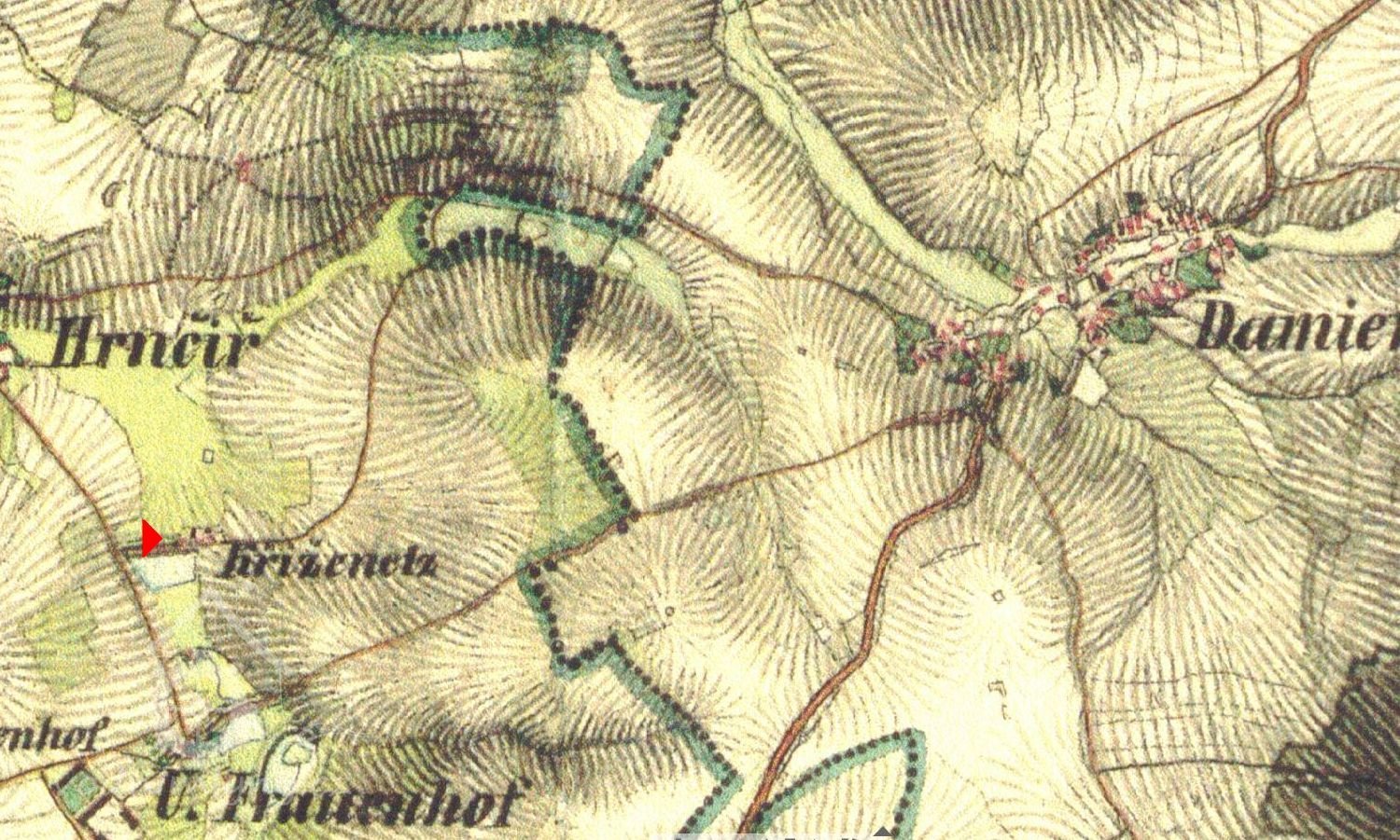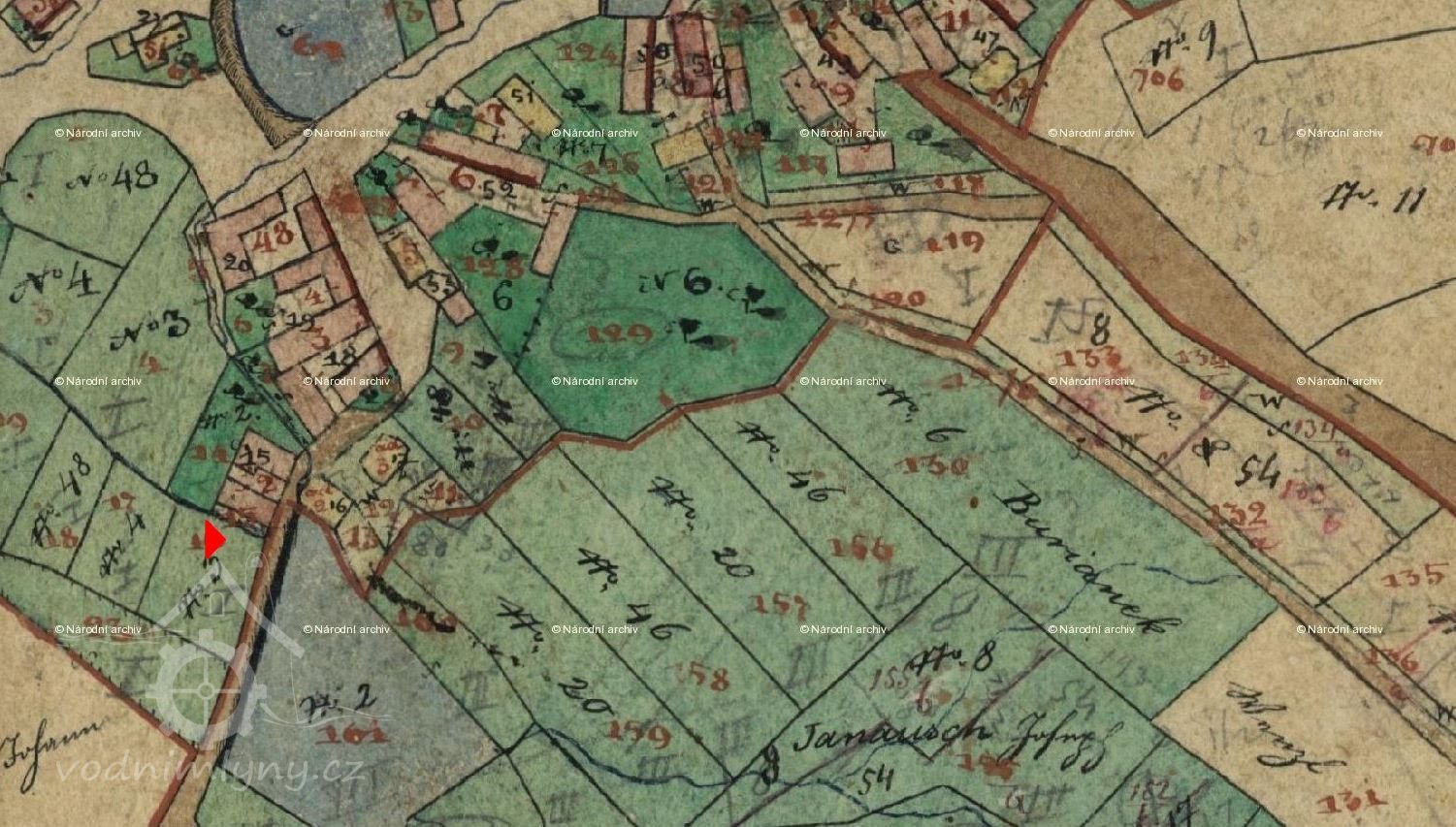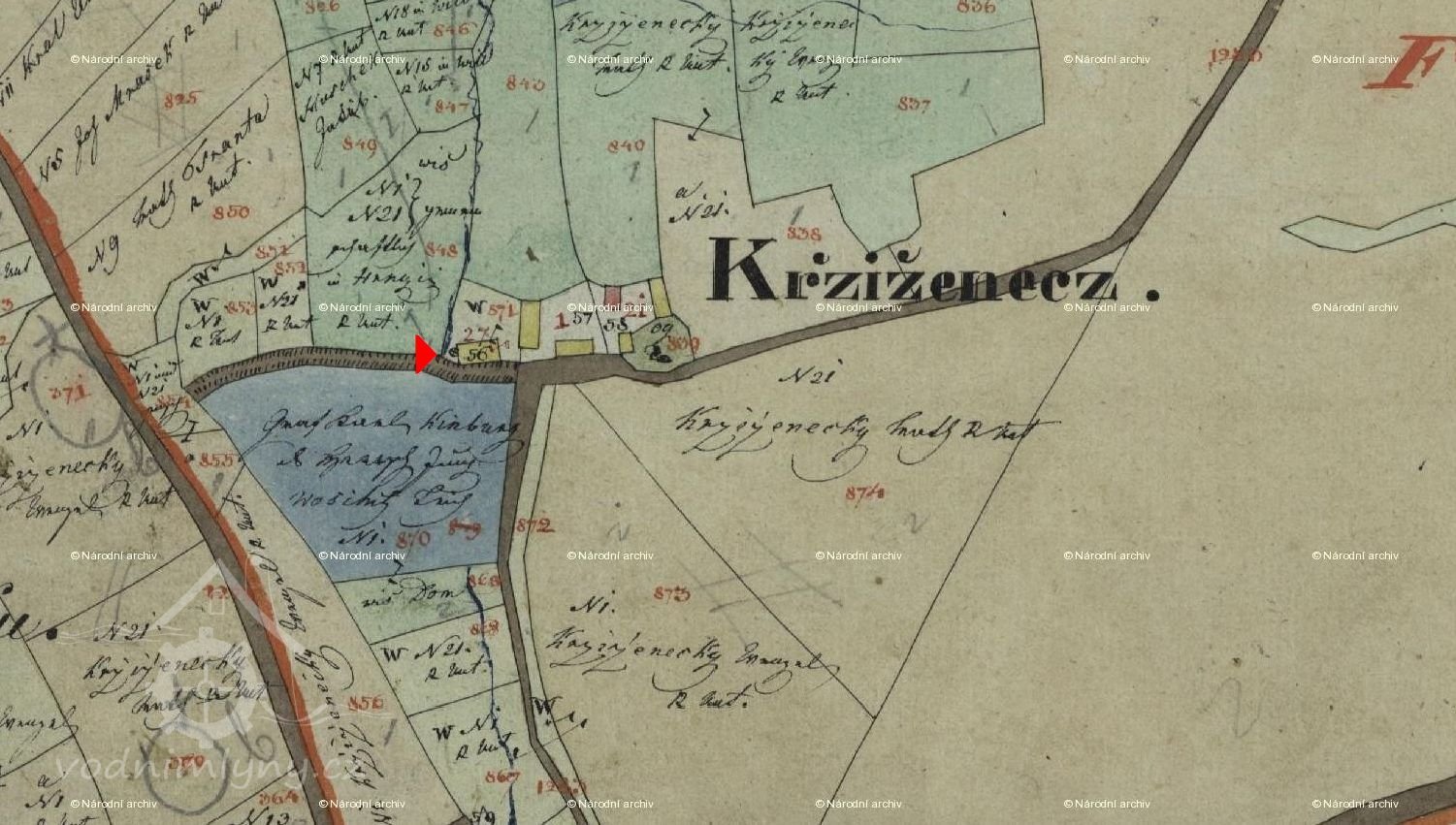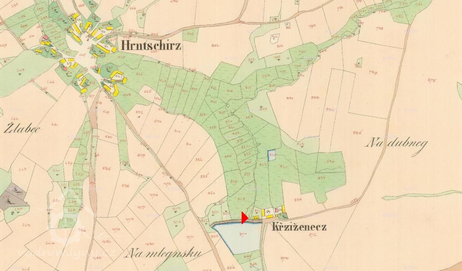 Císařský povinný otisk, výřez, viz archivnimapy.cuzk.cz, 1842, © neznámý