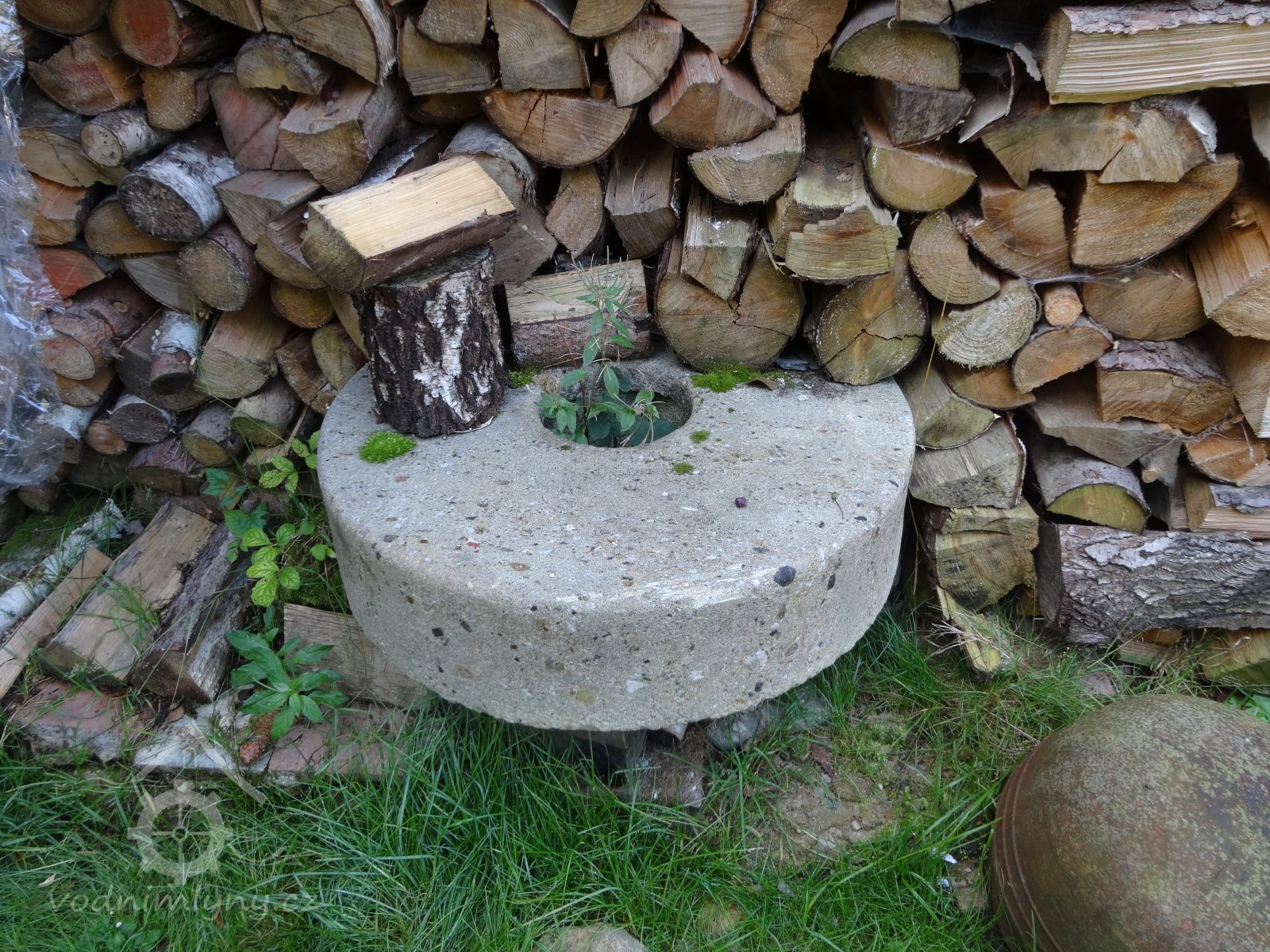 Jeden z mlýnských kamenů zdobících dvůr mlýna, 27.9.2016, © pepino, (Prvky na obrázku: mlecí kámen)