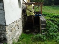 Maketa vodního kola v původní lednici bude vždy připomínat minulost stavení., 27.9.2016, © Pepino, (Prvky na obrázku: Vodní kolo)