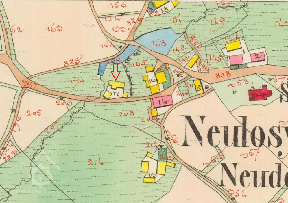 V roce 1890 zde byli zapsáni dva financové s kuchařkou. V druhé části domu, která byla mlýnem, žila rodina Antona Zintla. Mlýnský provoz tehdy již patrně nepracoval.