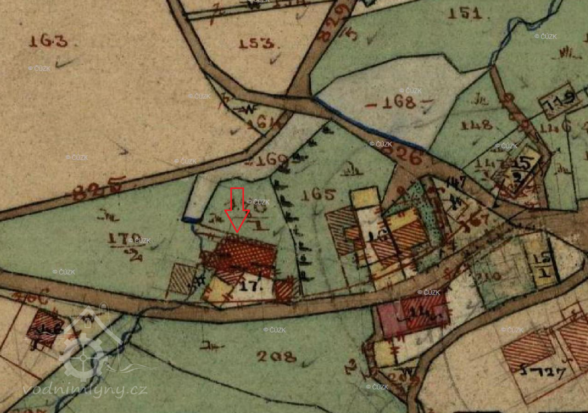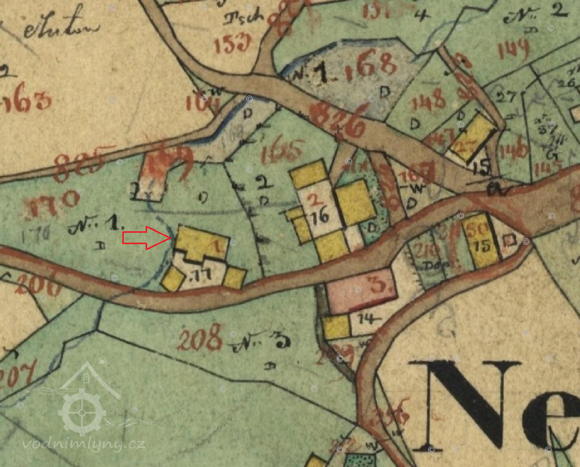 V roce 1876 byl u mlýna zasazen vodní cejch s iniciálami majitele Ludwiga Czerneho, který byl však uveden jen jako hospodář, nikoli jako mlynář. Bydlel zde s ženou Margarethou, rozenou Stich, 2 dětmi a matkou. V nájmu zde 2 členové finanční stráže a jejich kuchařka.