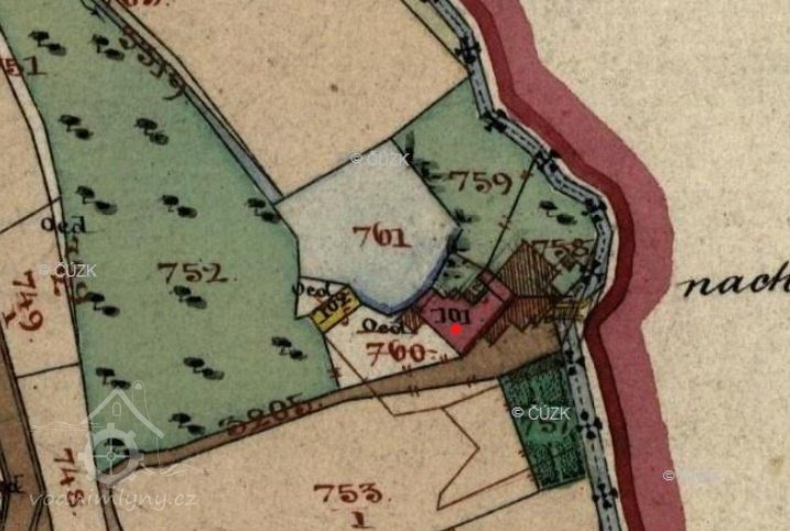 Větší mlýn nacházející se asi 150 m jižně od koupaliště. Mlýn je přestavěn na bytový dům a hospodářské části na garáže.