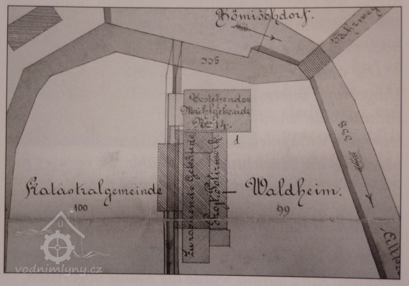 Součástí Waldheimu se stal také mlýn. Tereziánský katastr zde k roku 1757 zaznamenal mlynáře, který měl v nájmu panský mlýn s jedním kolem a pilu na nestálé vodě.