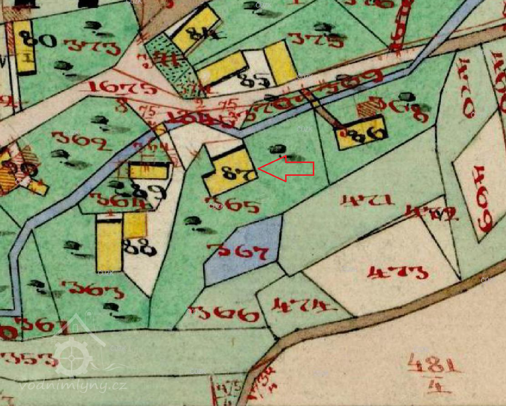 Od roku 1771 byl veden v matrikách obce pod čp. 45 a byl zakreslen do mapy I. vojenského mapování. V té době ho provozoval mlynář Jakob Fritsch s manželkou Annou Marií Löfel. Manželům se zde narodily děti Barbara (1771), Franz Wenzel (1774), Maria Anna (1775), Franz Anton (1781), která však všechny zemřely v dětském věku. Další syn, Jakob, narozený v srpnu 1786 se dožil dospělosti a převzal mlýn.
