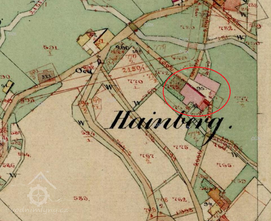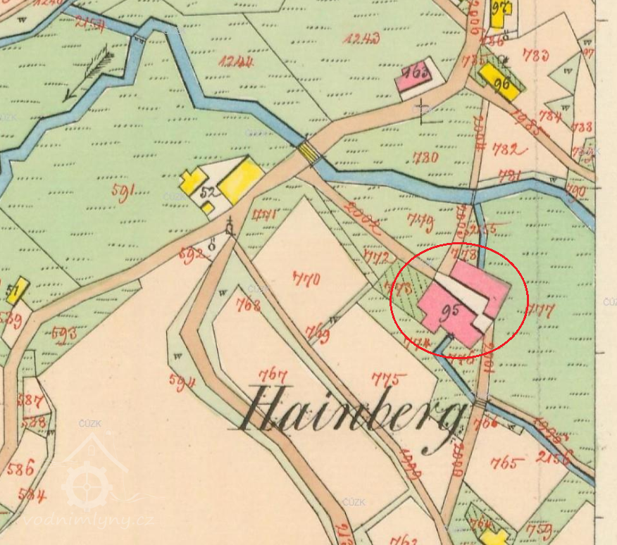 Popis1930 – vodní kolo na vrchní vodu, spád 5 m, výkon 9 HP