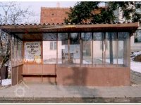 Autobusová zastávka je zde od 60. let 20. století. Současná podoba je z roku 1998. Předtím byla čekárna kovová s prosklenými tabulemi