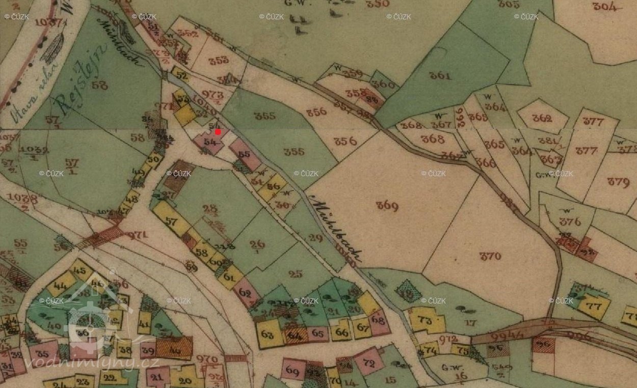 PopisV roce 1930 pohání brusírnu skla kolo na svrchní vodu s průtokem 0.105 m3/s, spádem 3.35 m o výkonu 3 HP.