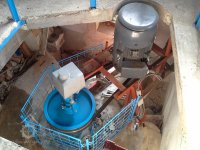 Dlouhý náhon s průtokem 800l a spádem 0,2 m.