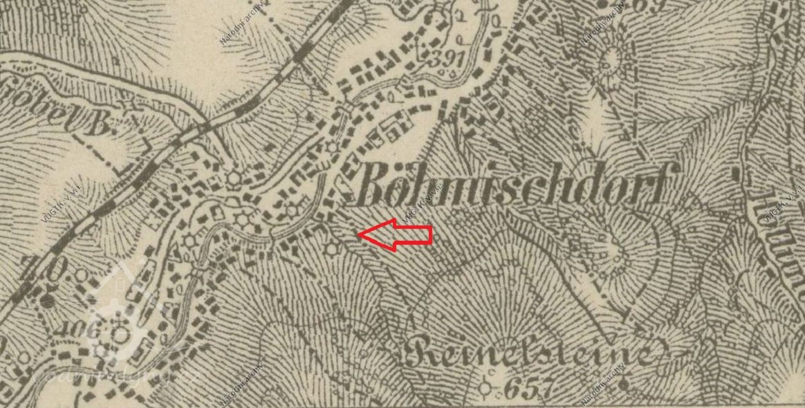 Mlýn vznikl zřejmě až v 19. století. V roce 1836 vlastní hospodářství s mlýnem Wiktor Nitsche.
