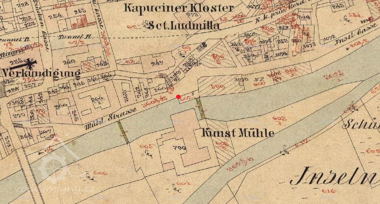 Mlýn, v té době již pila byl zbořen mezi lety 1843 a 1877 v souvislosti s výstavbou železniční tratě.
