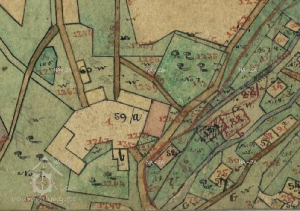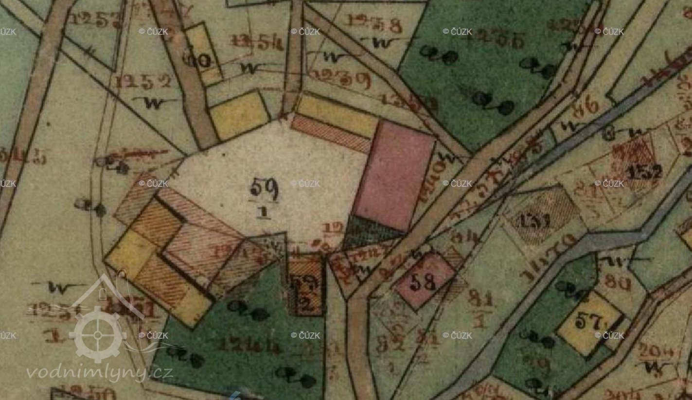 PopisV r. 1930 zde bylo 1 kolo na svrchní vodu, průtok 0,08 m3/s, spád 5,6 m, výkon 3,88 k.