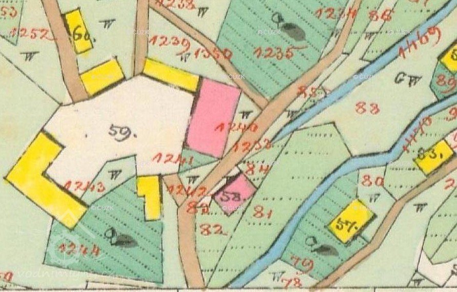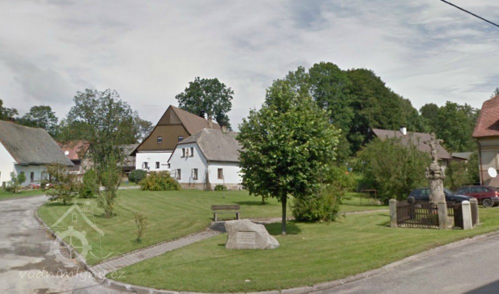 Rozsáhlá zemědělská usedlost ojediněle spojená s mlýnem a doplněná křížem. Příklad zástavby vesnice na Policku a jejích proměn v průběhu 19. století.