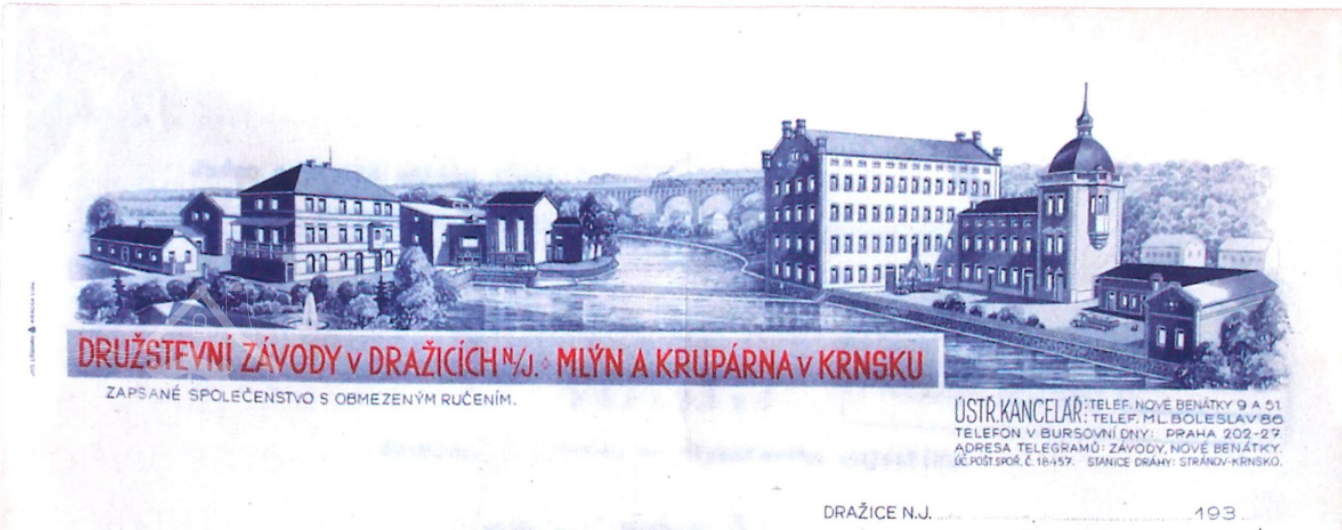 V roce 1934 byly objekty patřící Dürichovým, tj. krupárna v Krnsku a bývalý mlýn s elektrárnou v Zámostí, z důvodu zadlužení prodány v exekuci. Koupily je Družstevní závody Dražice nad Jizerou. Za mlýn v Krnsku zaplatily 959 910 Kč, za elektrárnu a bývalý mlýn v Zámostí 1 4085 300 Kč.  Zdejší mlýn se ií nadále orientoval na výrobu krup, a dále na loupání a půlení hrachu. V roce 1936 byla opět vyměněna turbína za novou výkonnější, opět Francisovu, která dosahovala výkonu až 90 HP. Kromě turbíny byl na hlavní transmisi připojen elektromotor o výkonu 80 KW, na transmisi ve čtvrtém patře druhý elektromotor o výkonu 50 kW, bylo zde i několik menších elektromotorů k jednotlivým strojům. V následujících letech byla doplněna technologie. Kapacita krupárny byla v roce 300 q krup a 50 q hrachu za 24 hodin, skutečný výkon v roce 1938 byl 263 vagónů krup a 705 vagónů hrachu při 14 zaměstnancích. Krupárna pokrývala 54 % potřeby krup v Čechách. (MH)
